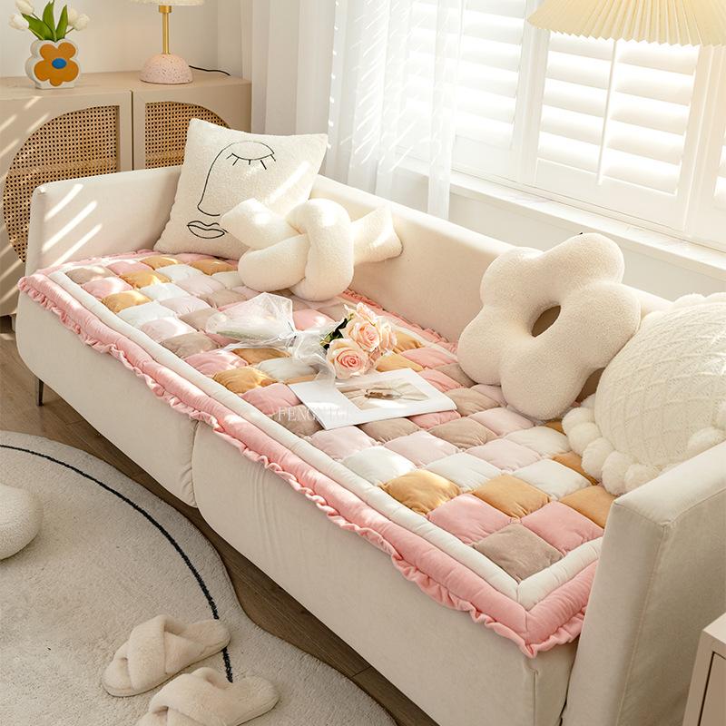 Размер диванных чехлов, которые вы выберете, должен быть на 20 ~ 30 см больше, чем фактический размер дивана. Остаточную часть можно повесить вниз, чтобы защитить боковую часть дивана или заправить под диван, чтобы предотвратить скольжение.