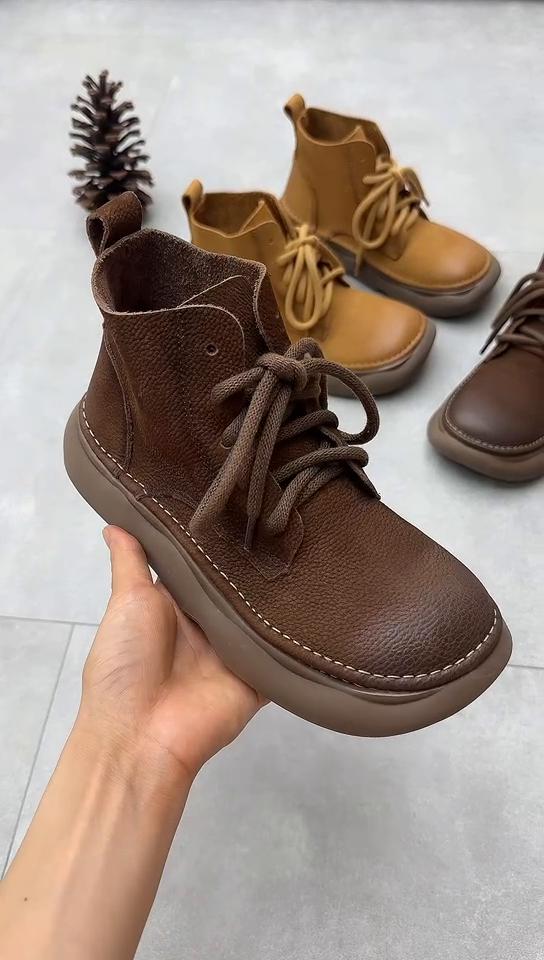 Johnature Ретро Натуральная Кожа Короткие Сапоги Широкий Носок Шнуровка Кожаные Женские Сапоги Мягкая Подошва — купить товар онлайн с бесплатной доставкой по всему миру!