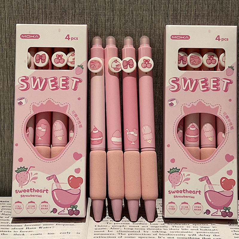 4 шт. кавайные мультяшные стираемые гелевые ручки для письма гладкие быстросохнущие ручки для письма школьные канцелярские принадлежности эстетические канцелярские принадлежности