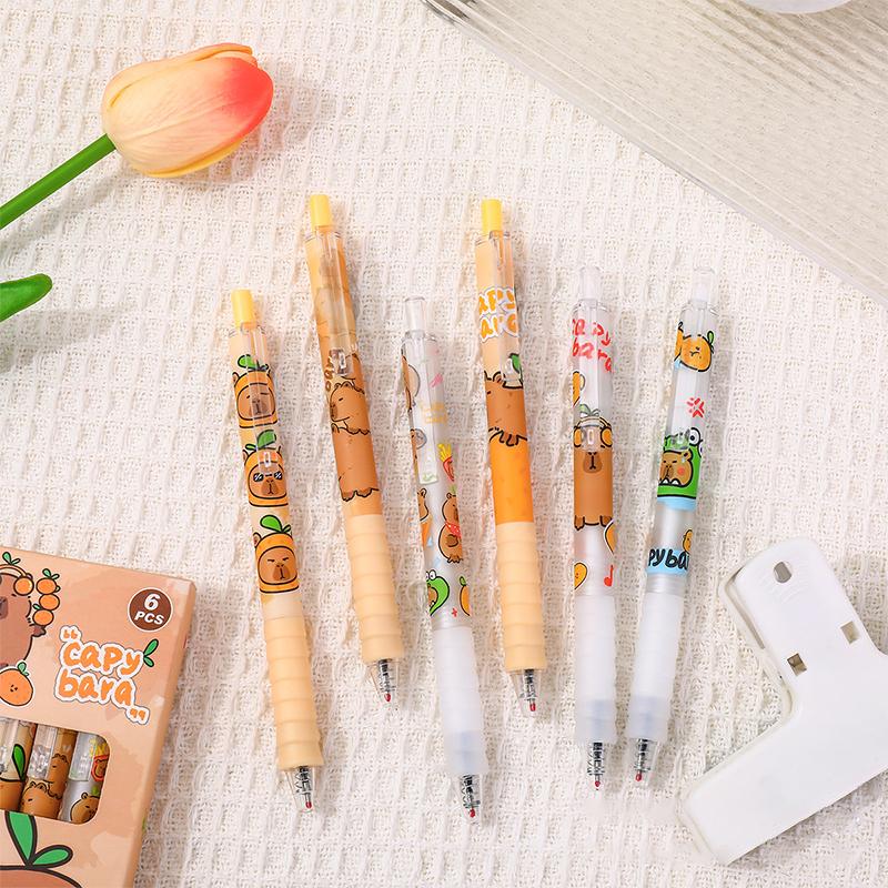 6 шт. милые гелевые ручки Capybara, быстросохнущие, пишущие, гладкие, мягкие, нейтральные ручки, эстетичные канцелярские принадлежности, подарки