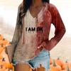 Женская футболка с длинным рукавом и V-образным вырезом, повседневный, удобный топ с принтом на Хэллоуин