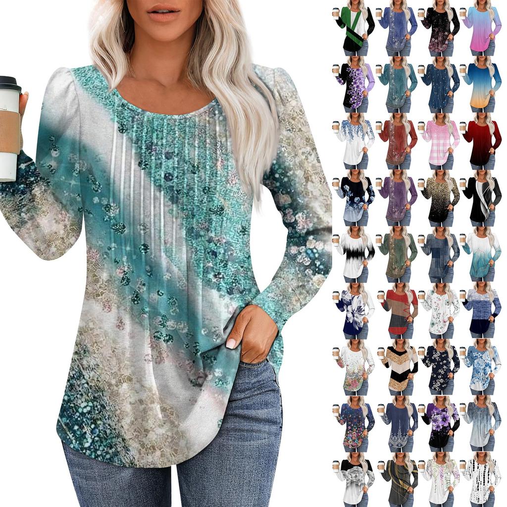Женская повседневная плиссированная футболка с круглым вырезом и длинными рукавами с принтом — купить товар онлайн с бесплатной доставкой по всему миру!