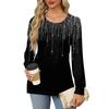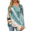 Женская повседневная плиссированная футболка с круглым вырезом и длинными рукавами с принтом
