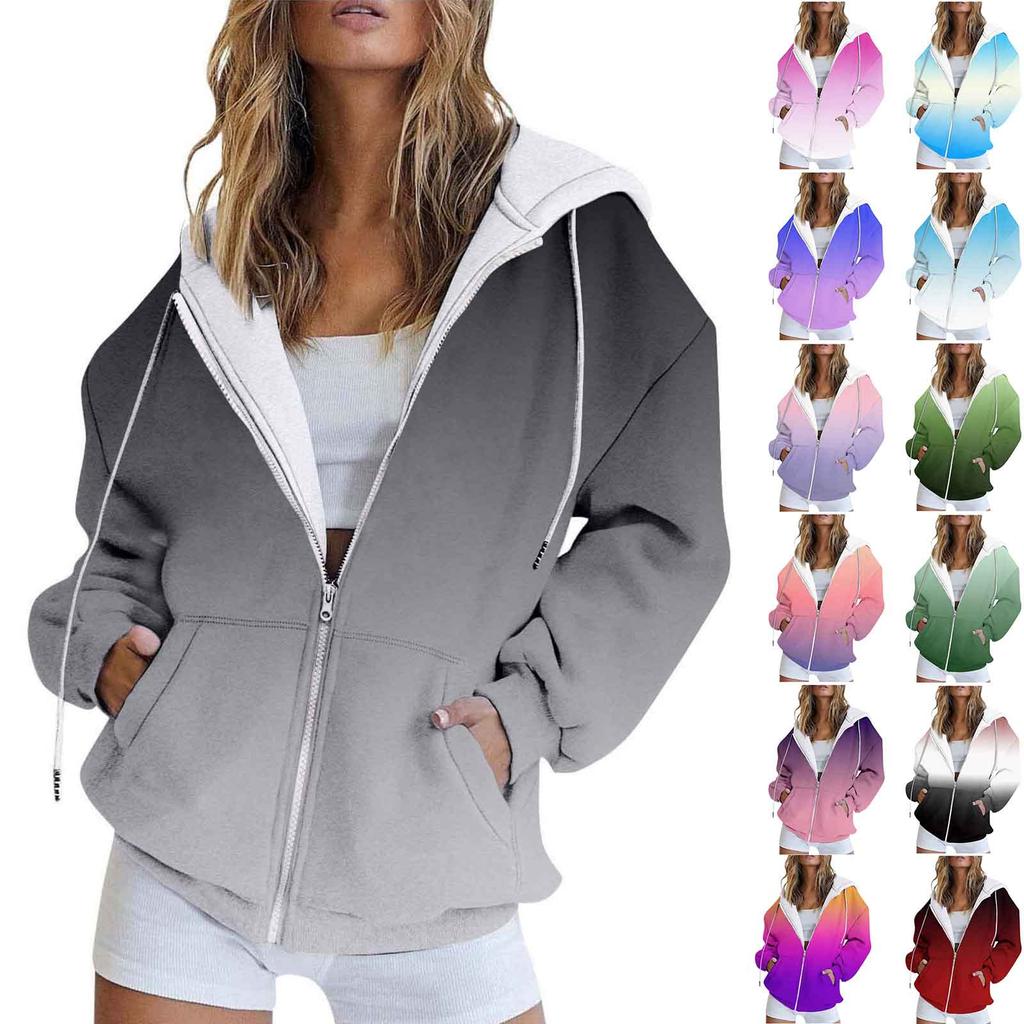 Женская модная повседневная толстовка с принтом, осенне-зимняя куртка-кардиган с длинными рукавами и карманами, куртка с капюшоном на молнии, пальто