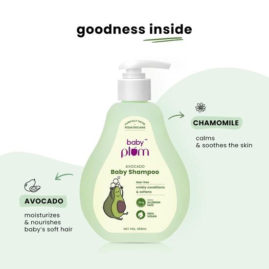 Plum Детский шампунь «Слива и авокадо» | Клинически протестирован педиатрами | С ромашкой и витамином B5 | Протестирован на отсутствие аллергенов | 200 мл | 0-4 года