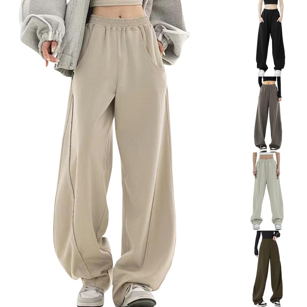 Спортивные брюки женские повседневные новые эластичные карманы прямые свободные санитарные брюки модные широкие брюки