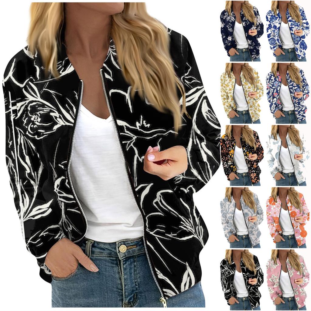 Женская модная повседневная куртка на молнии с длинным рукавом с цветочным/листовым принтом и круглым вырезом — купить товар онлайн с бесплатной доставкой по всему миру!