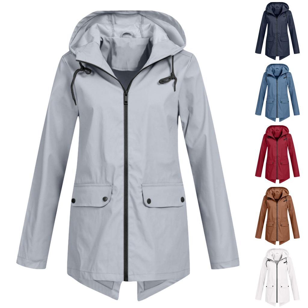 Женская однотонная ветрозащитная куртка средней длины с капюшоном для отдыха на открытом воздухе плюс — купить товар онлайн с бесплатной доставкой по всему миру!