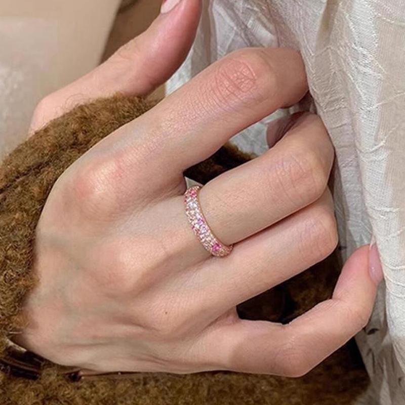 Корейские розовые циркониевые кольца для женщин, блестящее квадратное кольцо на палец, изысканное эстетическое кольцо, модные украшения для вечеринок, свадебные подарки, ювелирные изделия, витые кольца