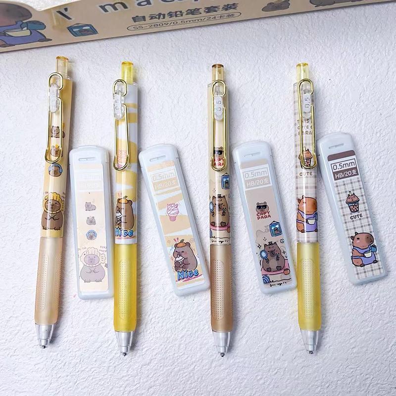 Набор механических карандашей Capybara Kawaii 0,5 мм со стержнем, симпатичные школьные канцелярские карандаши для письма, мультяшные канцелярские принадлежности, подарок для студента