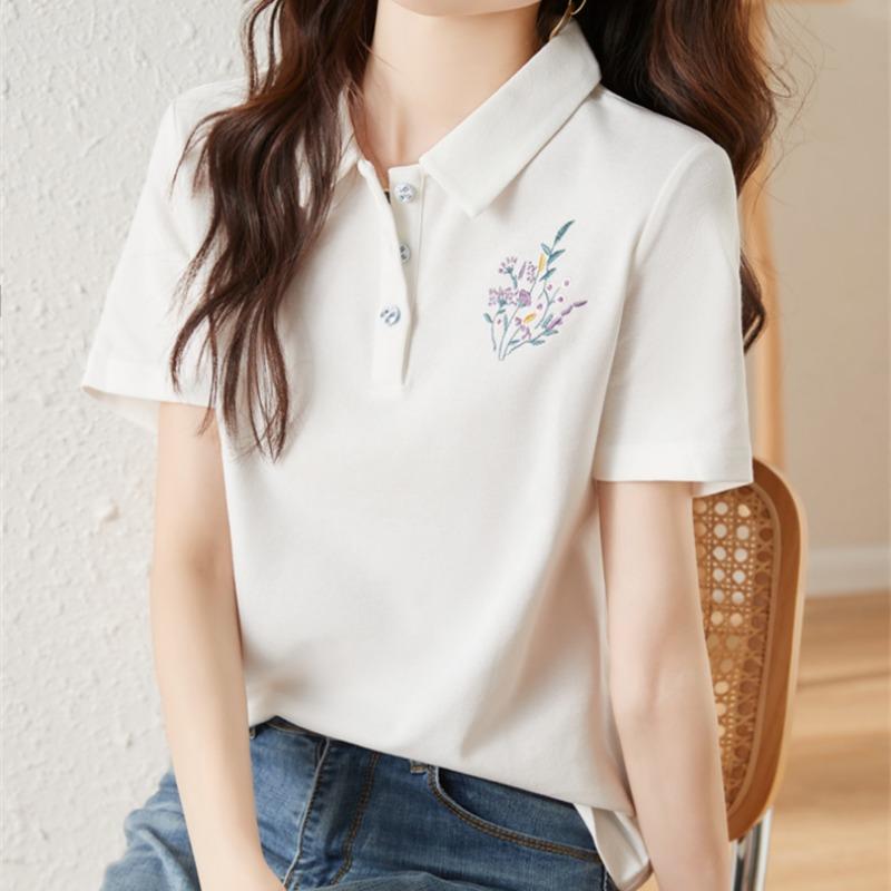 Летняя новая высококачественная вышитая цветочная модная футболка с короткими рукавами и лацканами, женская короткая рубашка-поло с воротником-полурукавом, верхняя одежда