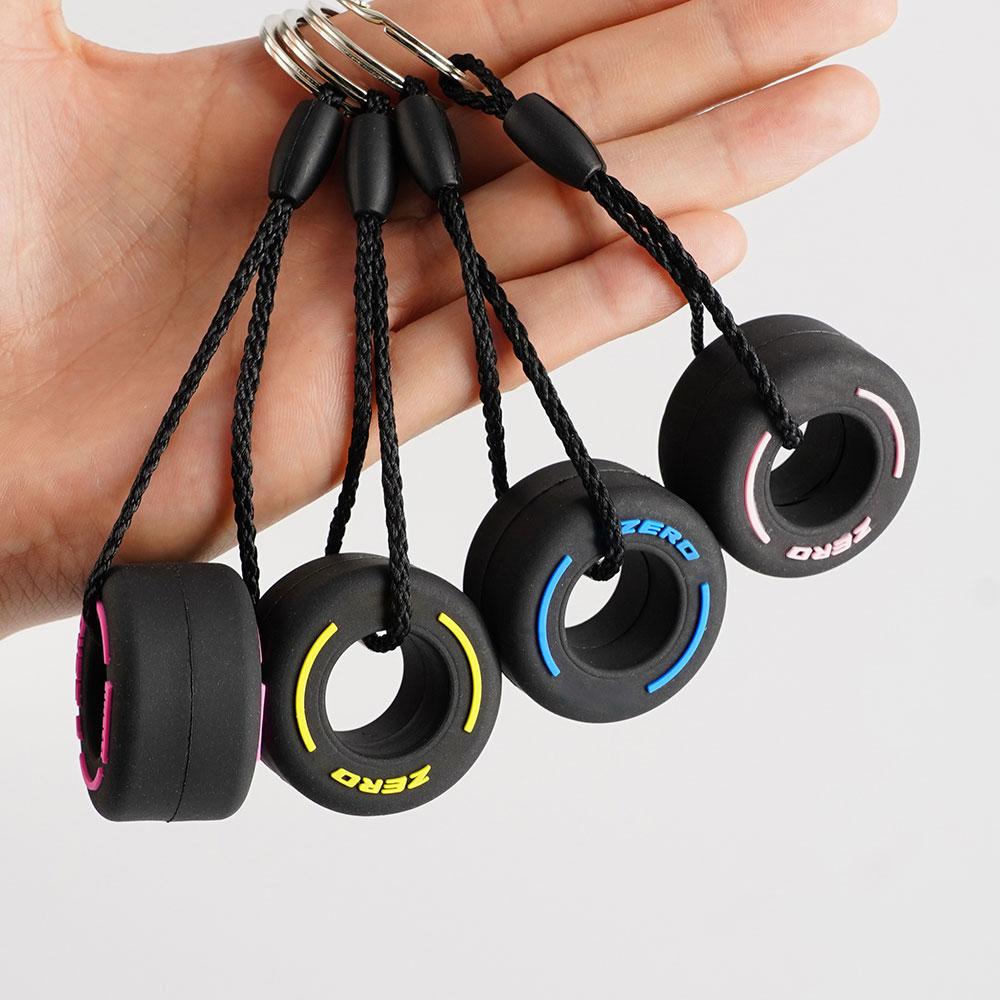 Брелок в виде шины, кулон, брелок, подарок для маленьких любителей автомобилей, модная мода с героями мультфильмов, имитация унисекс F1, украшение для автомобиля, резиновые автоаксессуары
