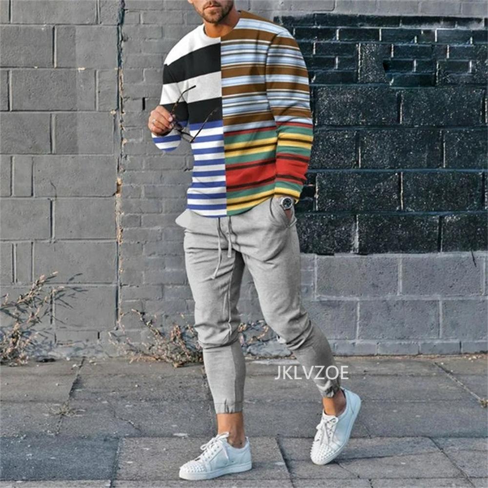 3D-печать, спортивный костюм, мужская футболка с длинными рукавами, брюки, мода, спорт, мужская одежда, спортивная рубашка, комплект из двух предметов,