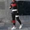 Мужской спортивный костюм, повседневный комплект из 2 предметов, футболка с длинным рукавом + длинные спортивные штаны, модные топы, футболки, наряды, свободная мужская одежда