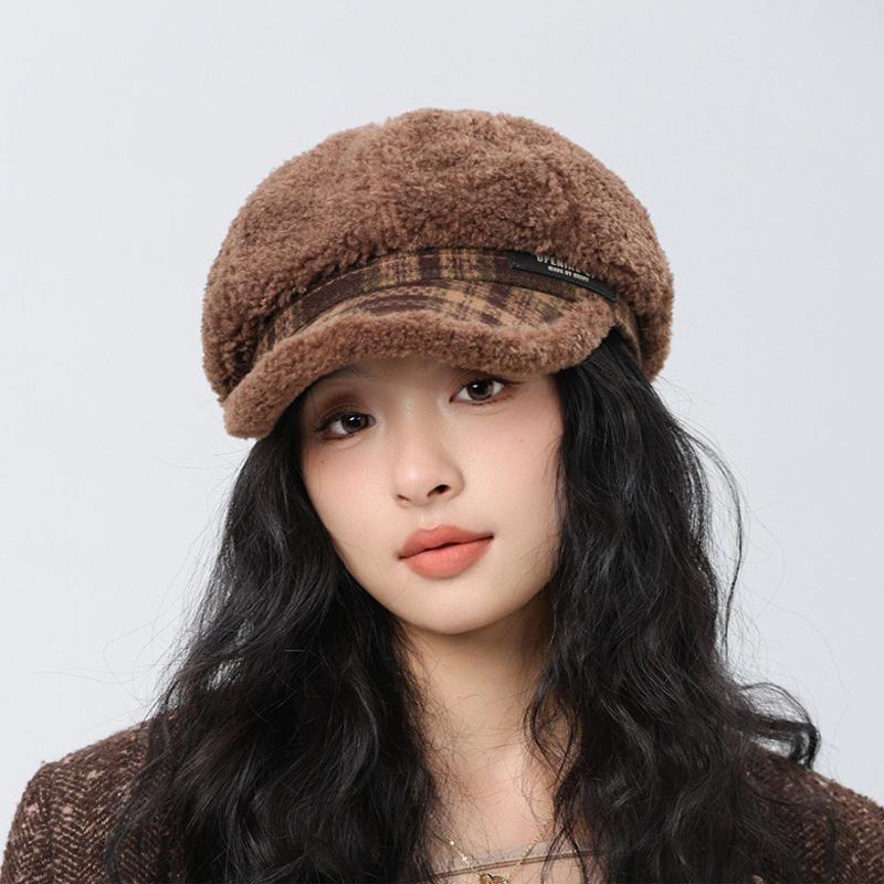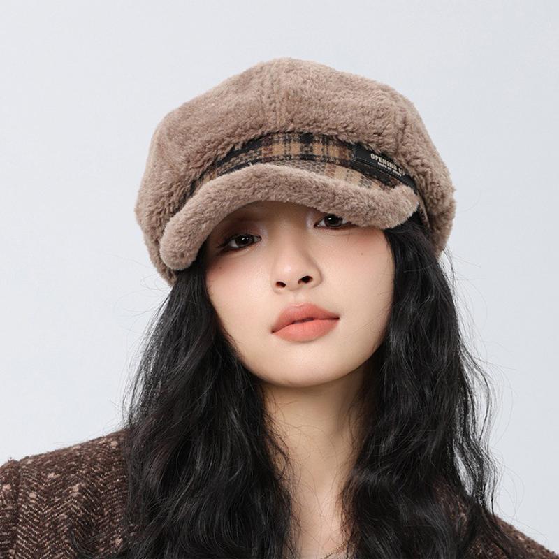 Мягкая восьмиугольная кепка женская осенне-зимняя теплая берет с большой головой кепка газетчика