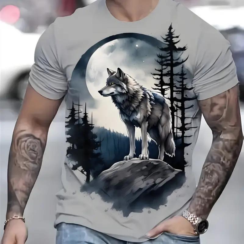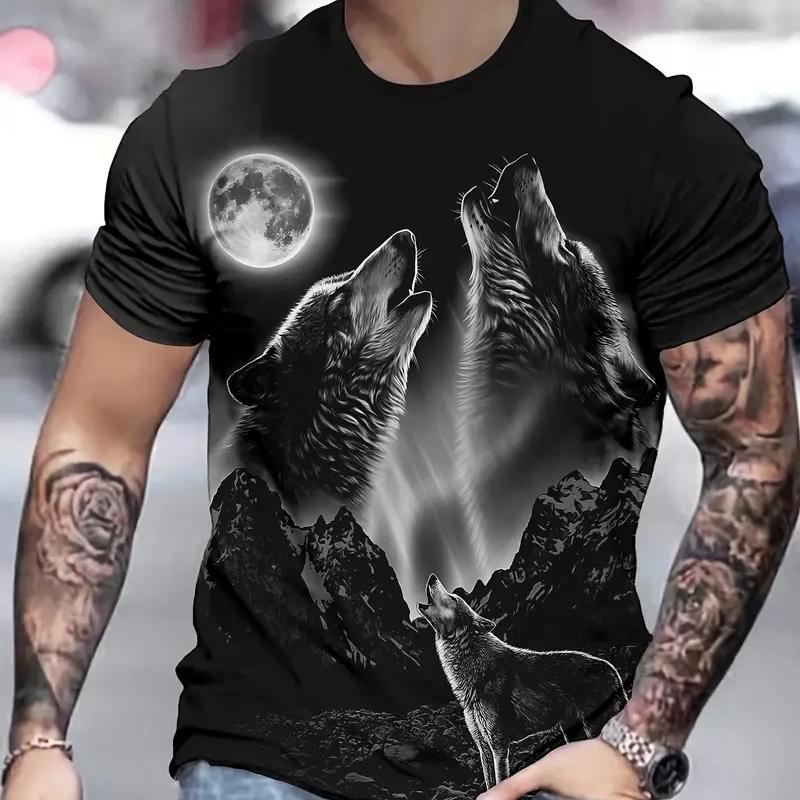Футболка с принтом 3D Wolf для мужчин, короткий рукав, летняя повседневная мужская одежда, быстросохнущие спортивные рубашки, винтажные футболки больших размеров, новые топы