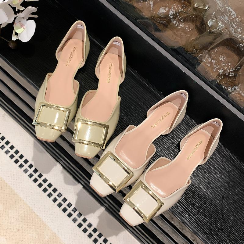 Квадратная головка одиночные туфли женские плоские летние неглубокие горлышки полые стремя одна нога сказочный ветер бабушкины туфли