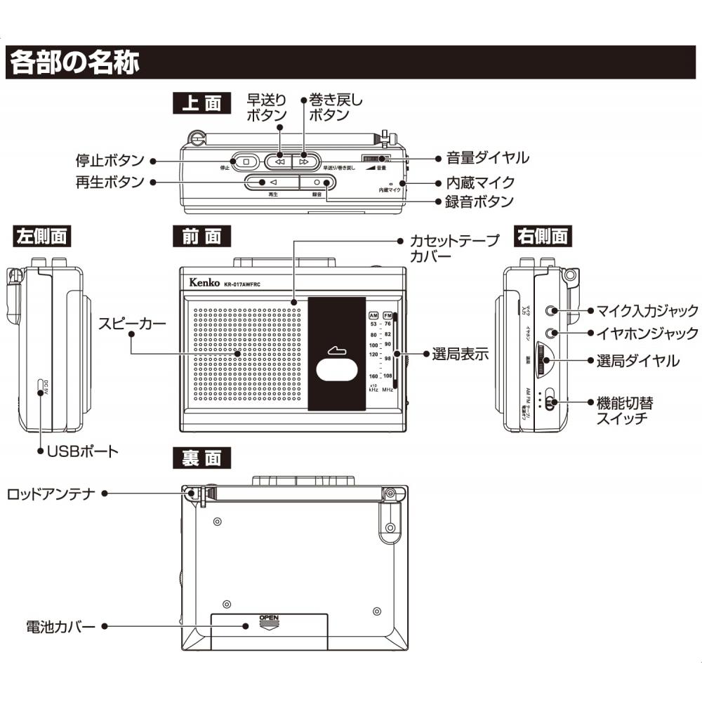 [Компактный, легкий и многофункциональный чехол для радио] Сверхкомпактный, многофункциональный чехол для портативного радио, совместимый с широким диапазоном FM, который может записывать радио или аудио на кассетную ленту [KR-017AWFRC]
