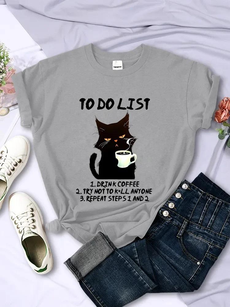 Черный кот Список дел Графические футболки Смешные коты Кофейные футболки Топы Футболка большого размера Модные футболки Harajuku Унисекс Брендовая футболка Унисекс