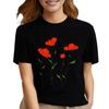 Модная красная футболка унисекс с принтом цветов и цветов, черная футболка с коротким рукавом, летняя футболка унисекс с принтом цветов в стиле Харадзюку для девочек