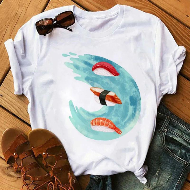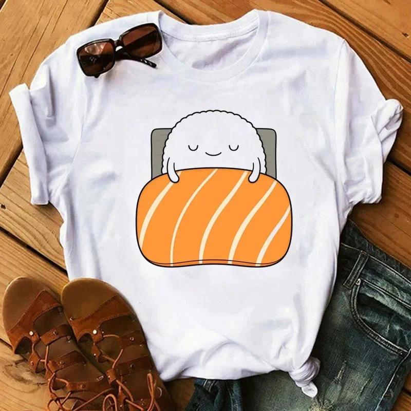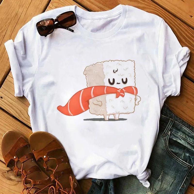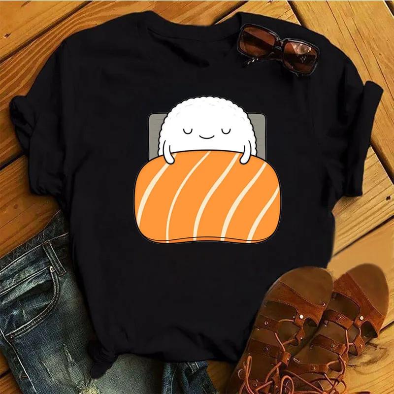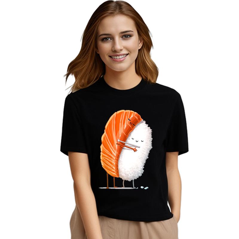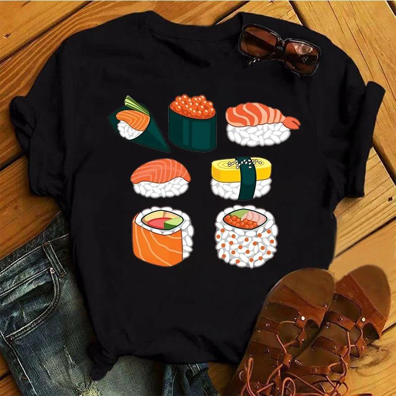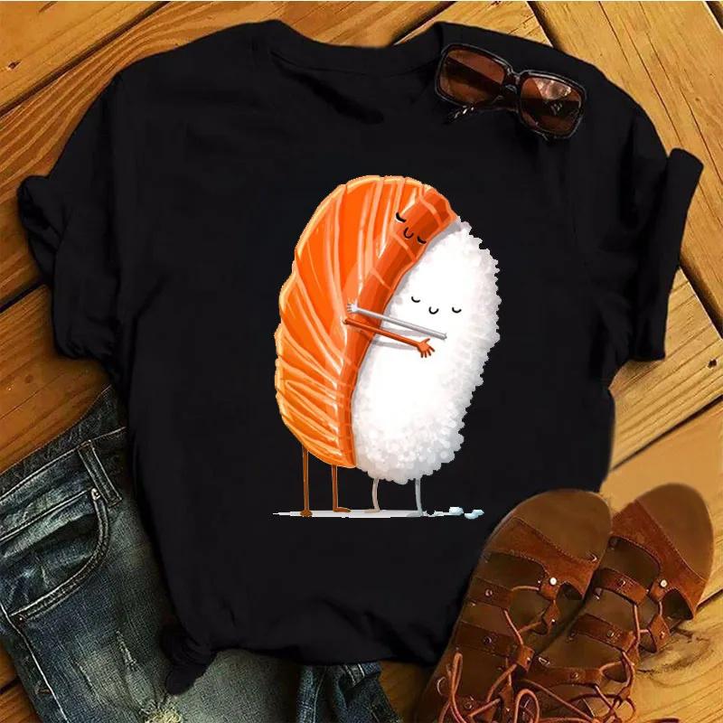 Милые футболки унисекс с надписью «Sushi hug», летняя черная футболка с коротким рукавом для девочек и женщин, O-Nock, кавайная одежда, верхняя футболка, женская футболка в стиле Харадзюку