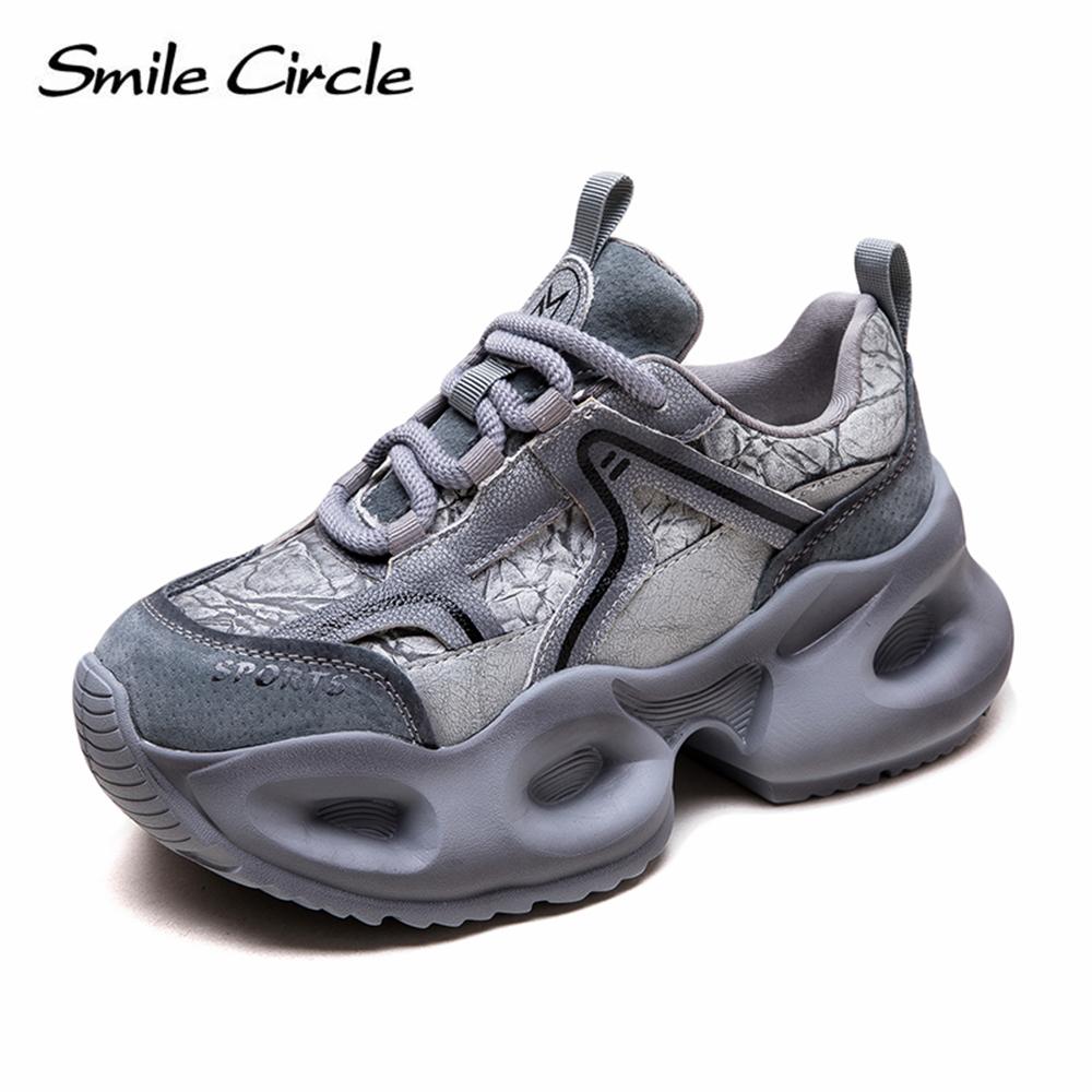 Кроссовки из натуральной кожи с круглым носком и толстой подошвой, удобная модная повседневная обувь — купить товар онлайн с бесплатной доставкой до всему миру!