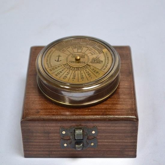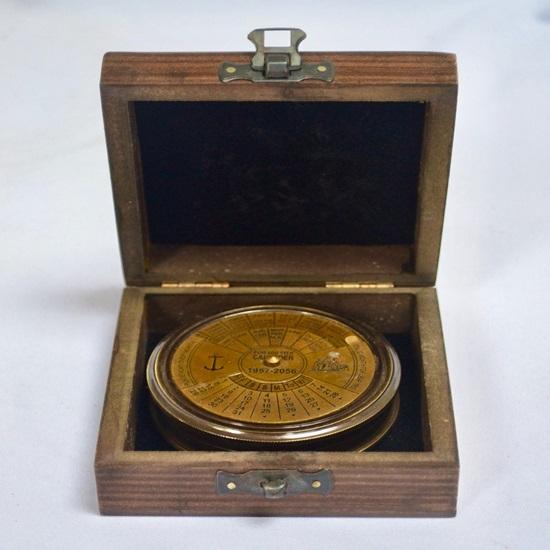 7,62 см Большой 100-летний календарь-компас в деревянной коробке - латунь, черный