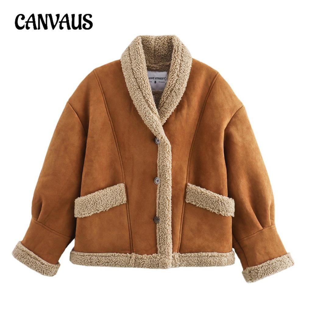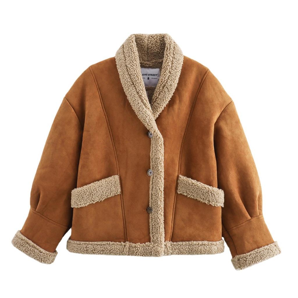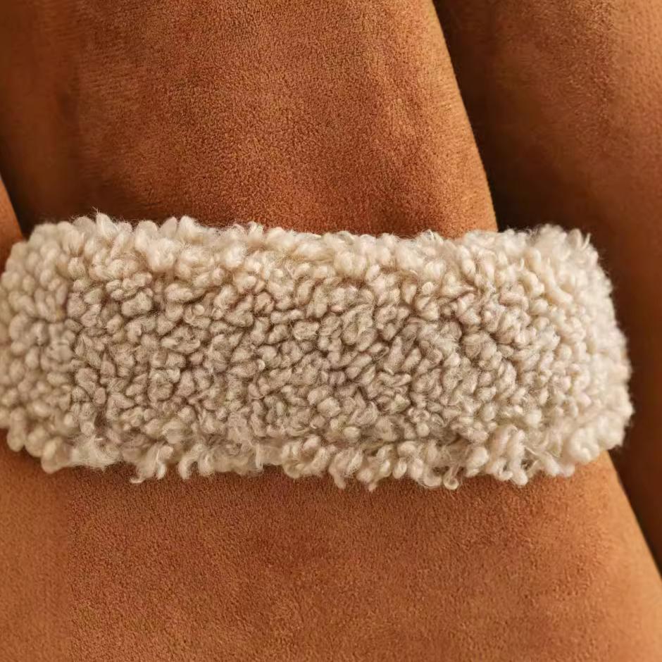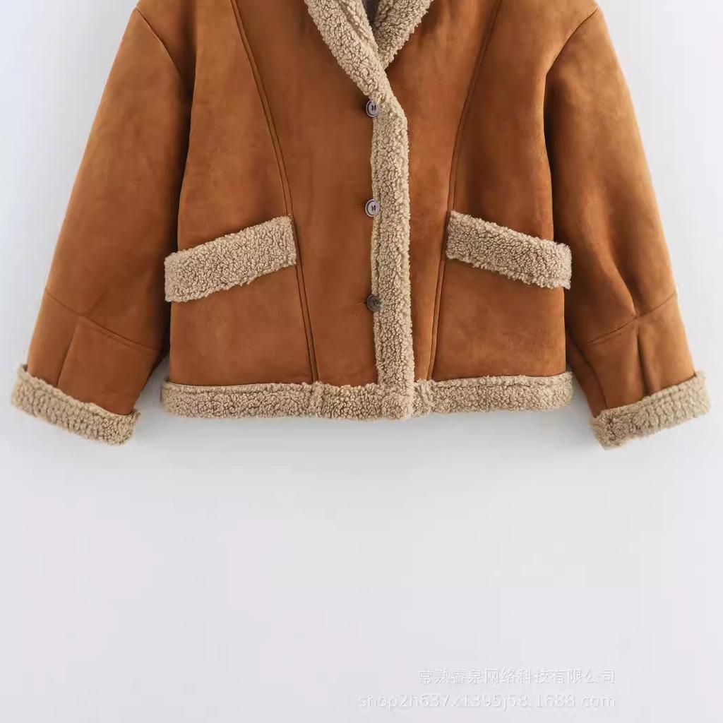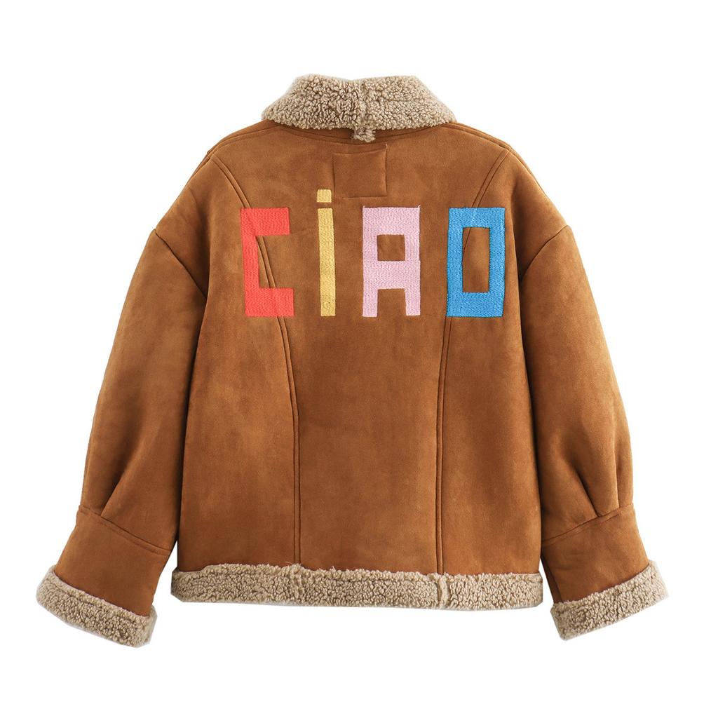 Зимнее женское винтажное замшевое пальто с большим карманом и вышивкой, короткое, теплое