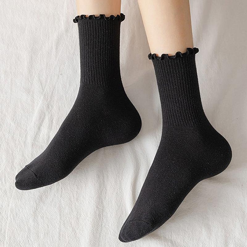 2 пары носков с оборками, женские милые чулки в стиле Лолиты, кавайные, для девочек, весенние черно-белые носки до середины икры