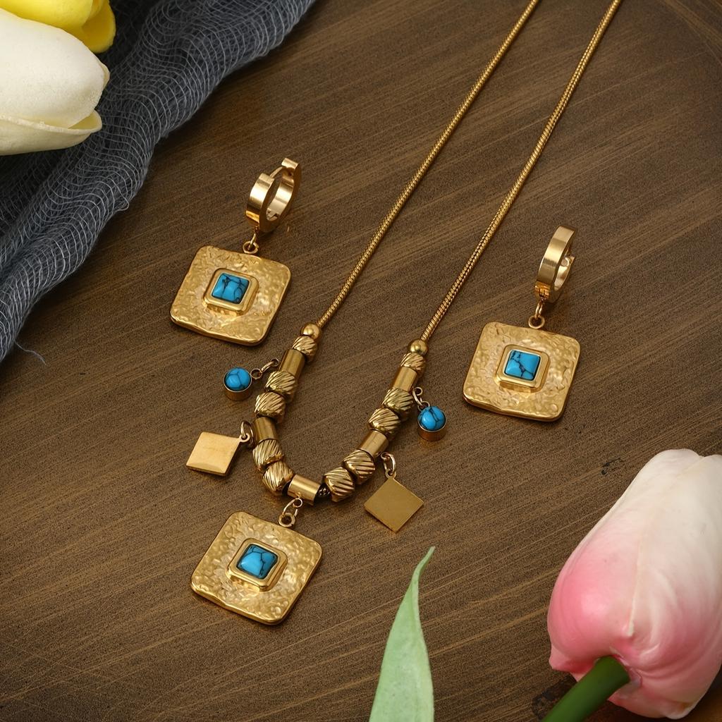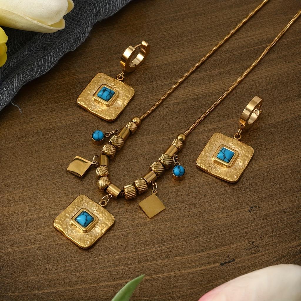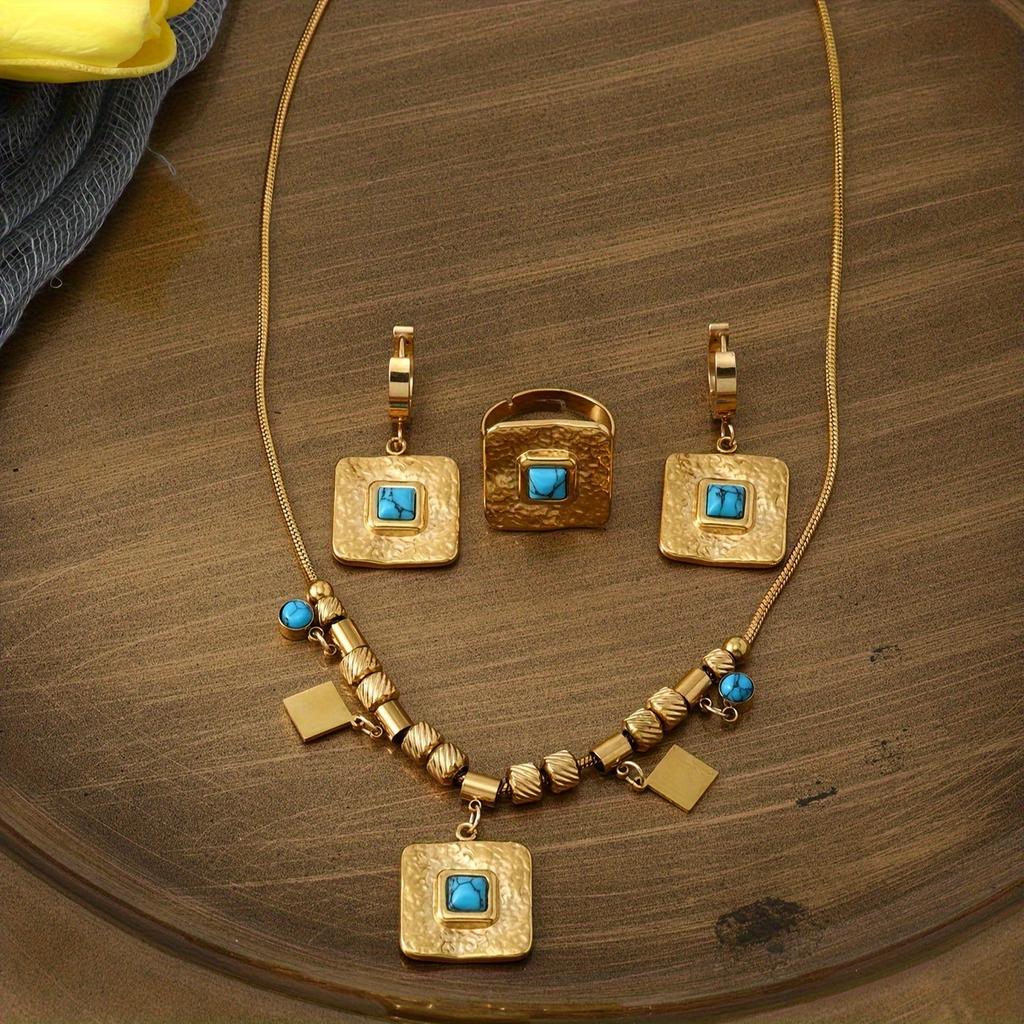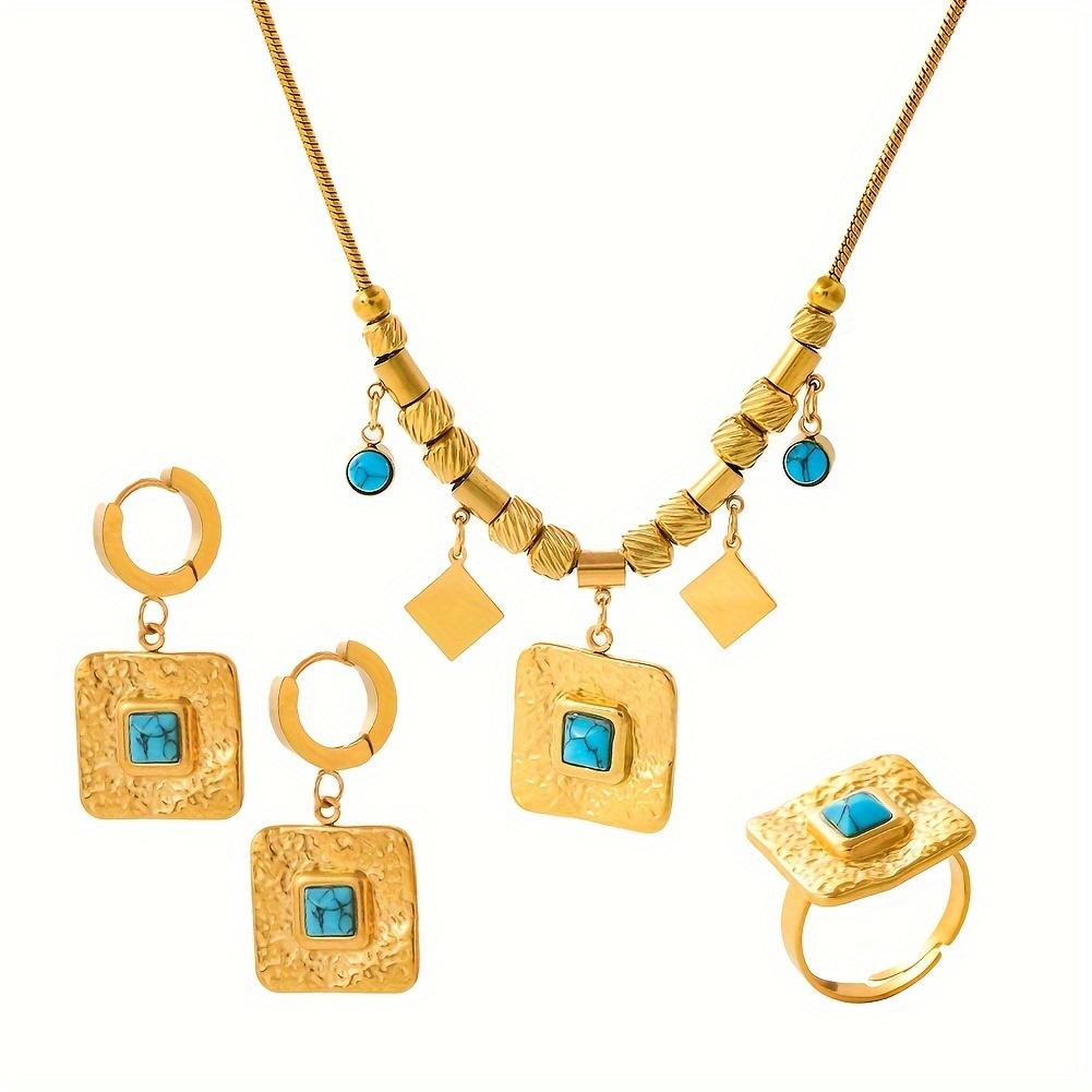 Позолоченное ожерелье, серьги и кольцо из нержавеющей стали с регулируемым геометрическим дизайном — идеально для свадеб и годовщин