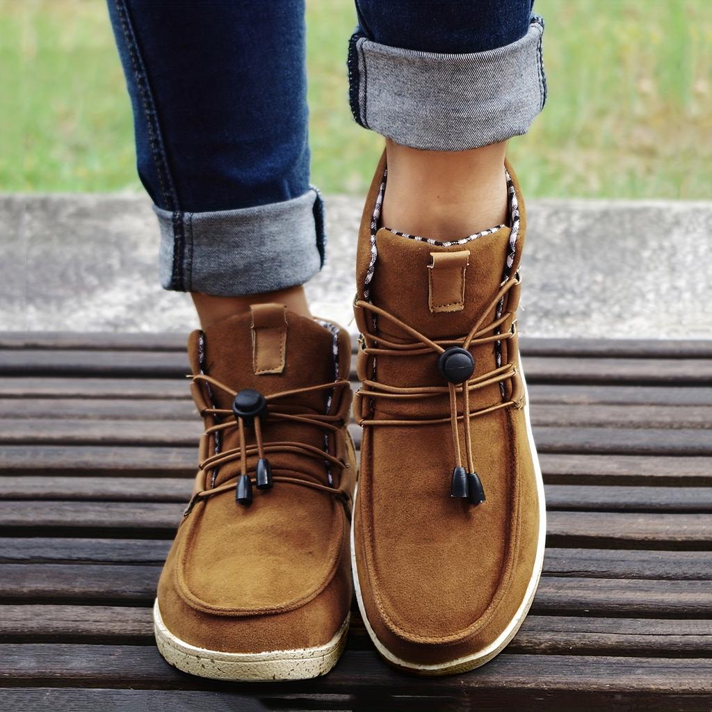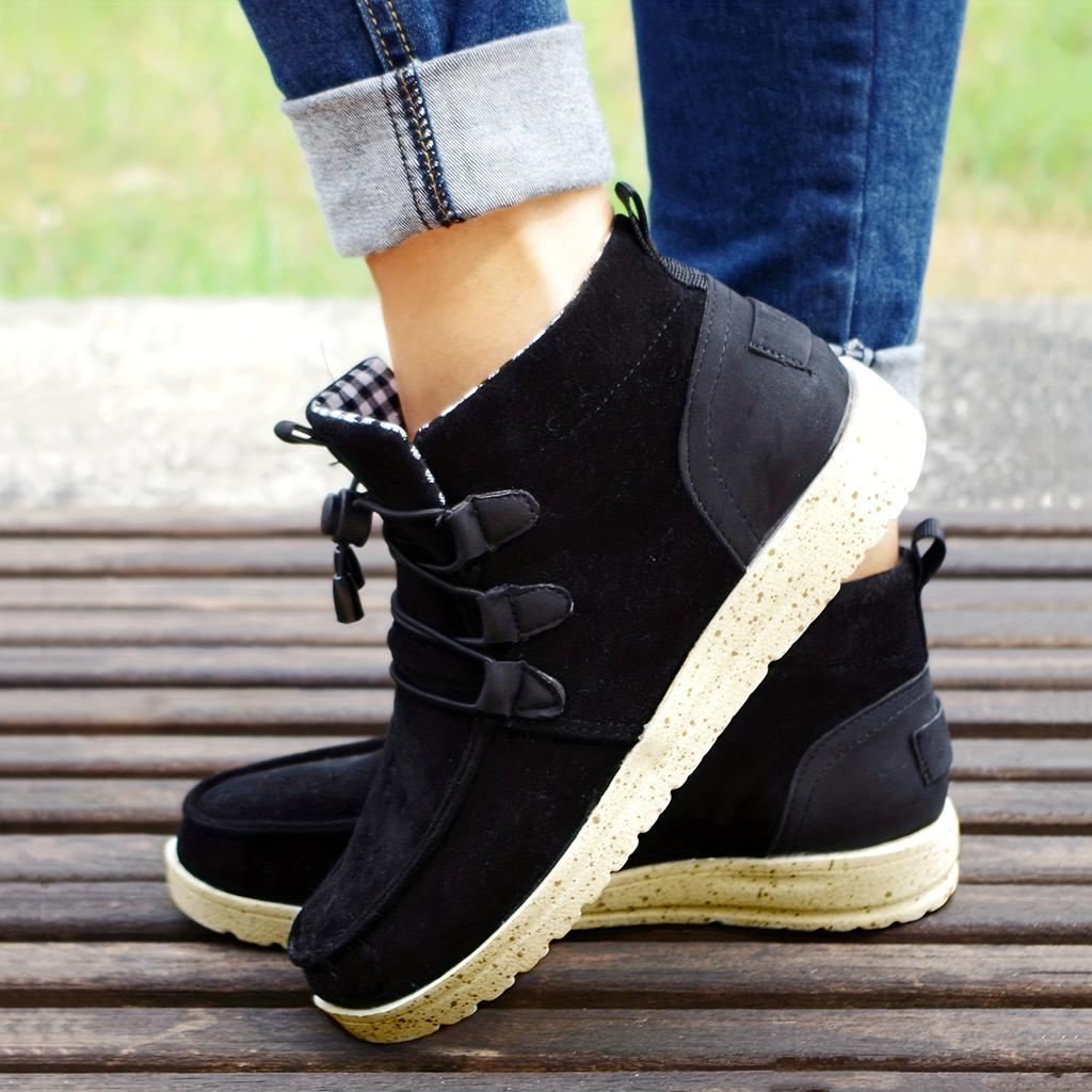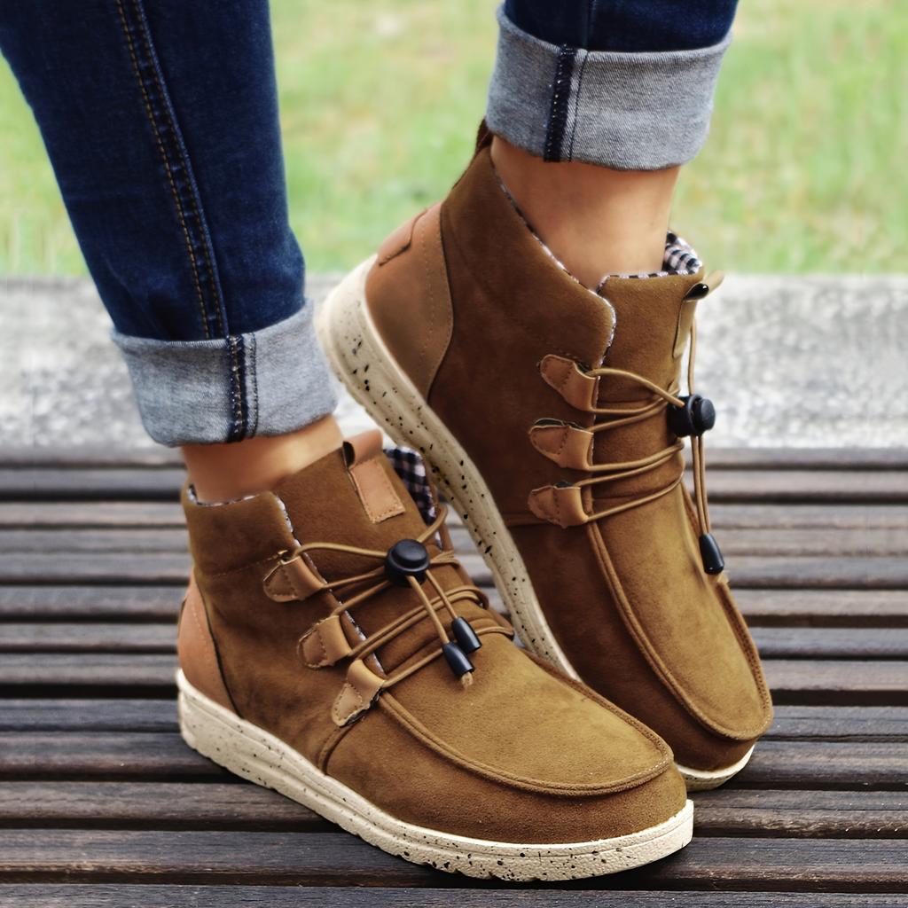 Шикарные теплые женские высокие ботинки на шнуровке с удобным плоским каблуком и стильным однотонным дизайном — идеально подходят для повседневной носки