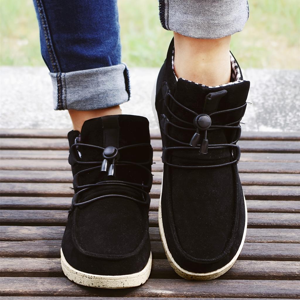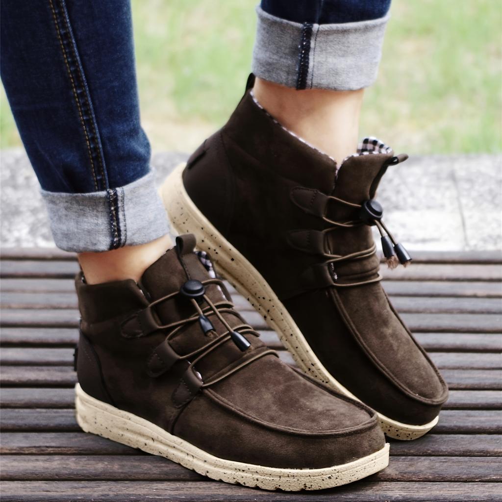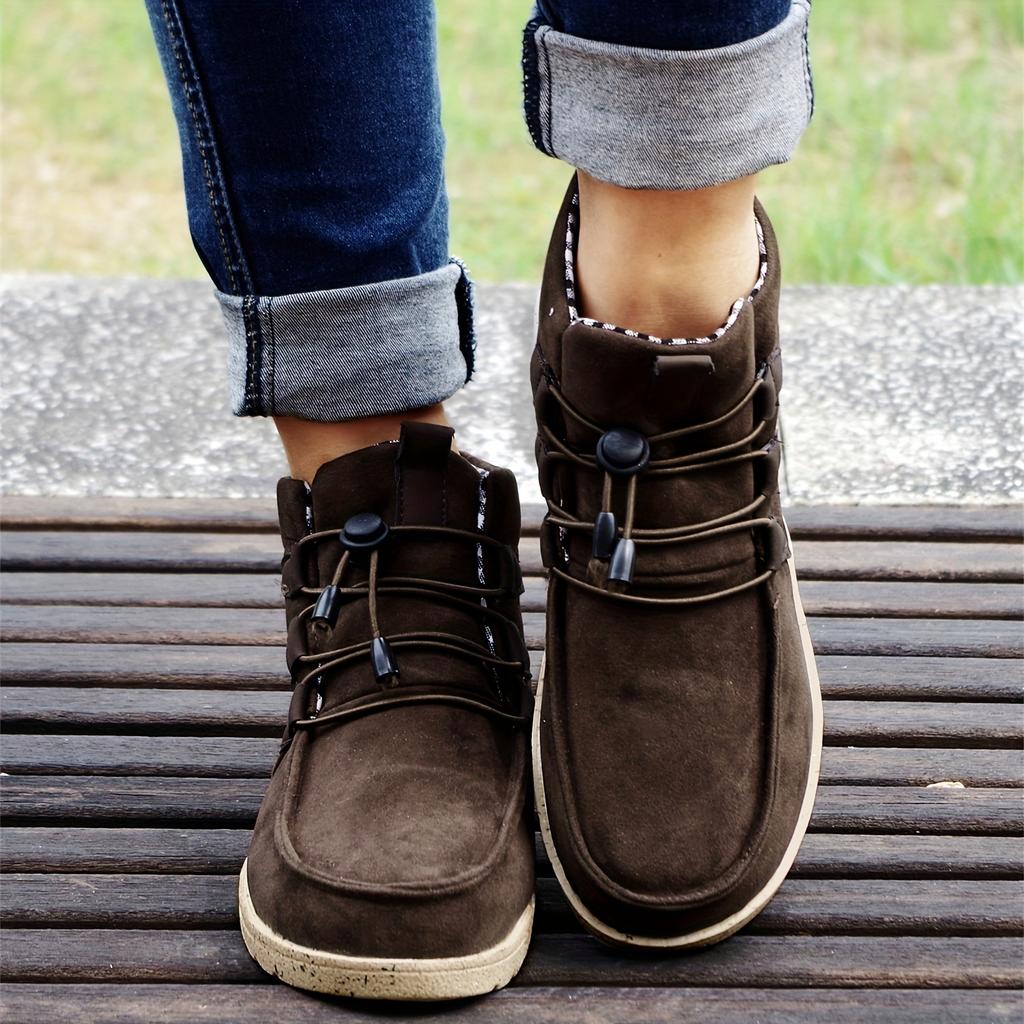 Шикарные теплые женские высокие ботинки на шнуровке с удобным плоским каблуком и стильным однотонным дизайном — идеально подходят для повседневной носки