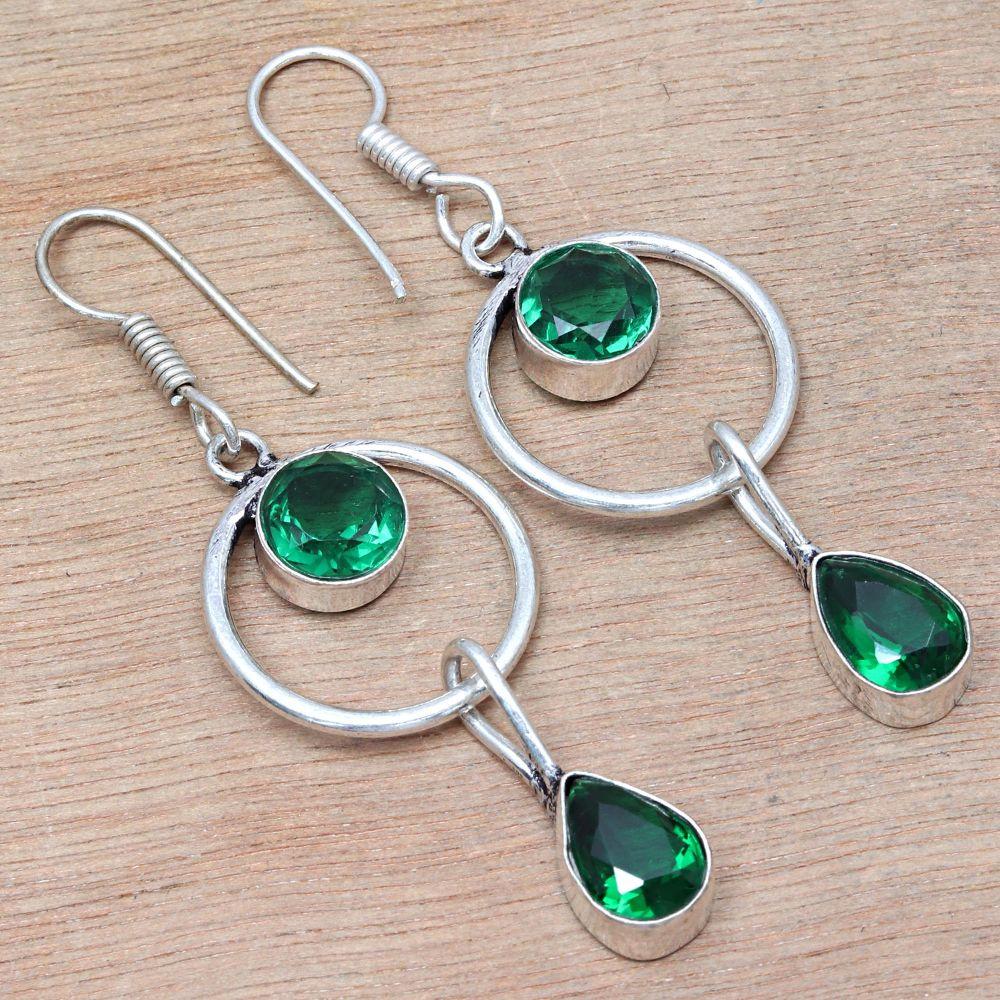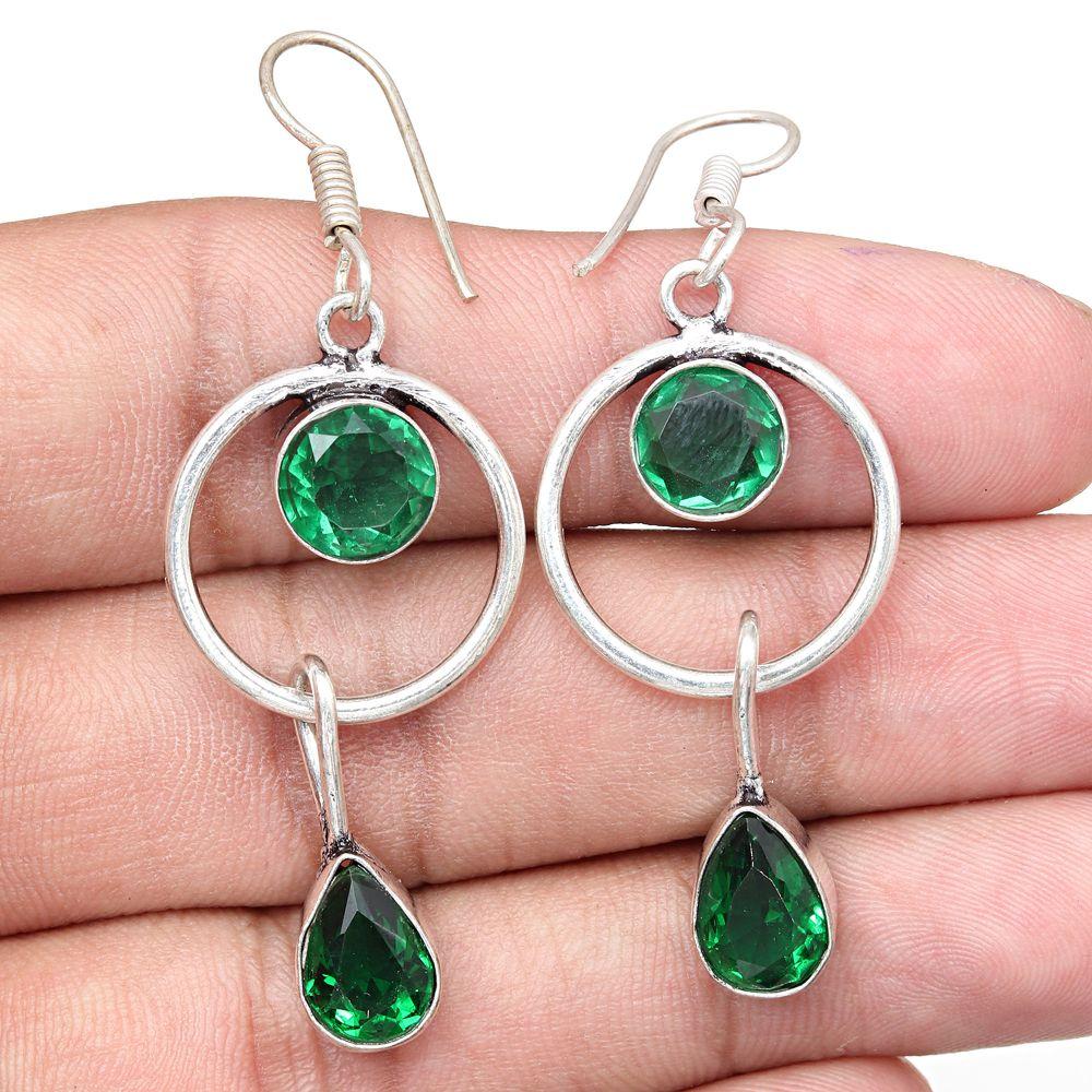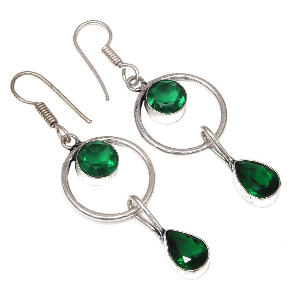 Изумрудный кварцевый драгоценный камень ручной работы подарок для нее серебряные ювелирные серьги 1,5''