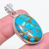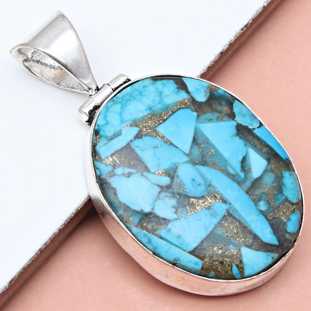 Кулон Голубая Медная Бирюза Драгоценный камень Подарок для нее Серебряные украшения 1,75"