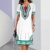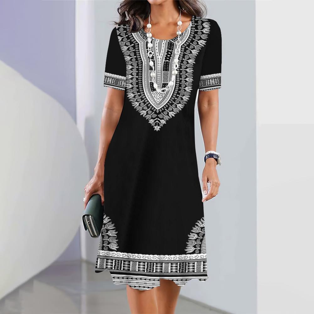 Летние женские свободные платья Винтажная геометрия Платья с короткими рукавами Праздничная повседневная юбка А-силуэта Дизайнерский национальный костюм