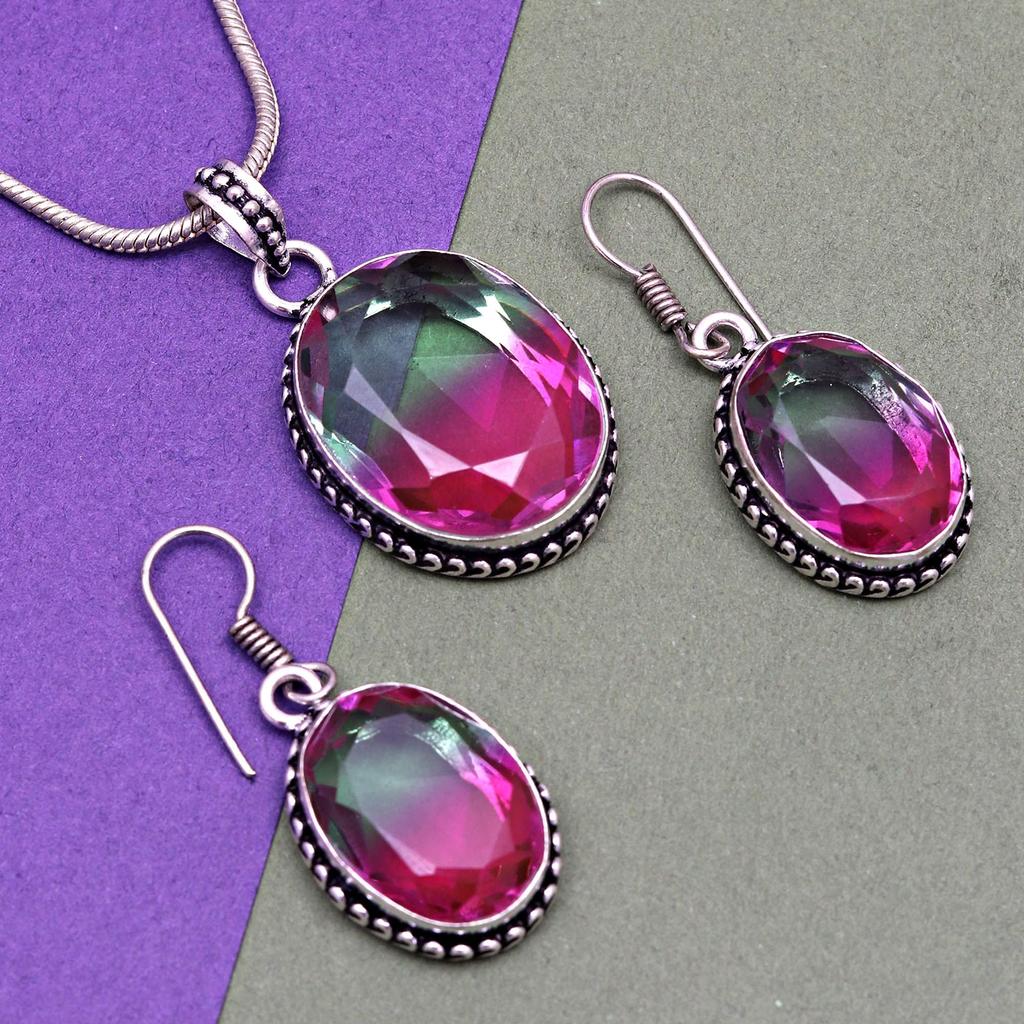 Турмалиновый комплект из драгоценных камней, подарок на свадьбу, двухцветный кулон, серьги, кольцо