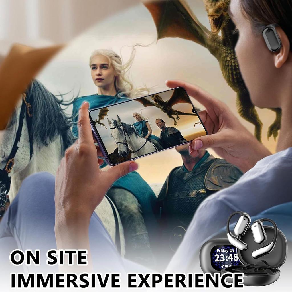 Накладные наушники-вкладыши True Wireless Open Ear Earbuds Bluetooth 5.4 Гарнитура беспроводные наушники-вкладыши Open Ear Headphones со светодиодным дисплеем Водонепроницаемые наушники