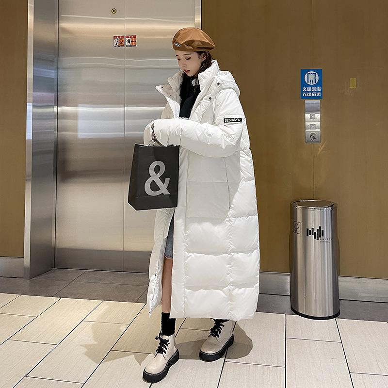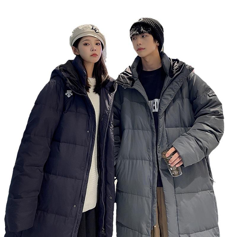 Длинная пуховая куртка для пар мужчин и женщин, один стиль, корейская длинная пуховая куртка выше колена, утолщенная и теплая белая пуховая куртка для мужчин