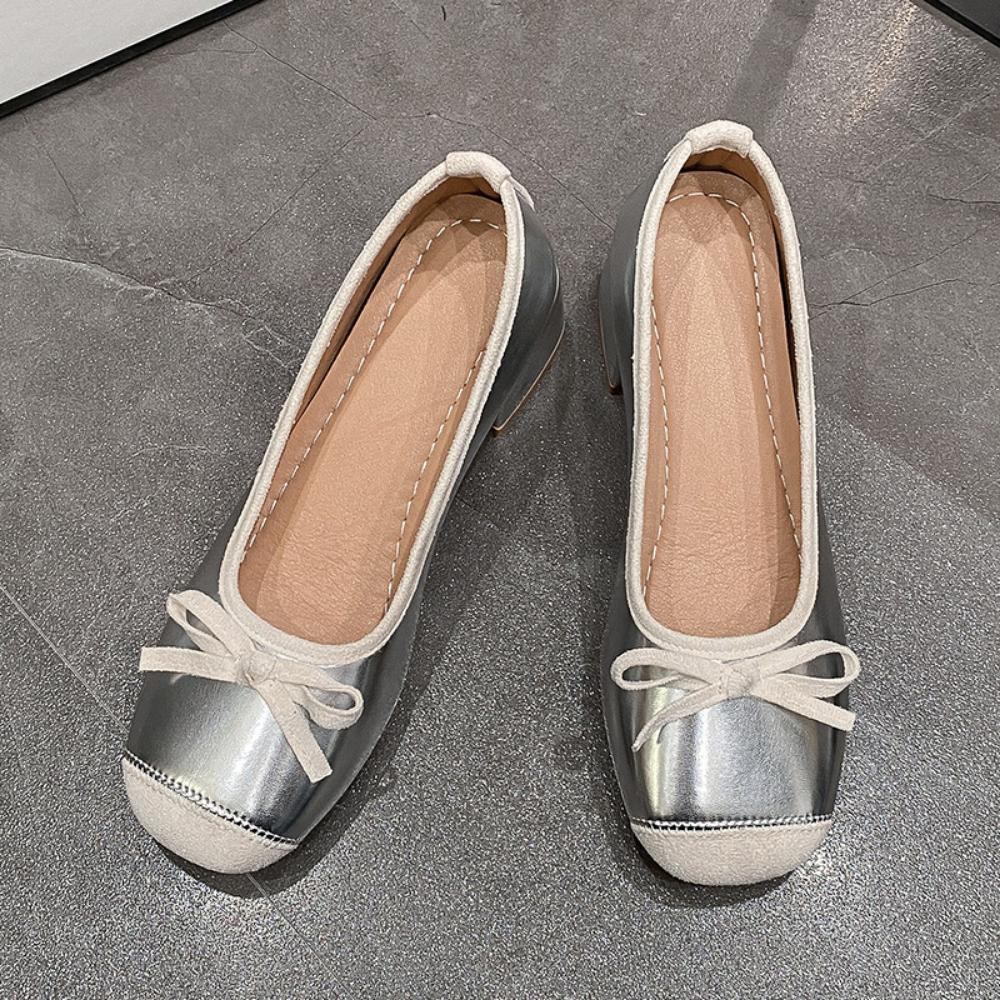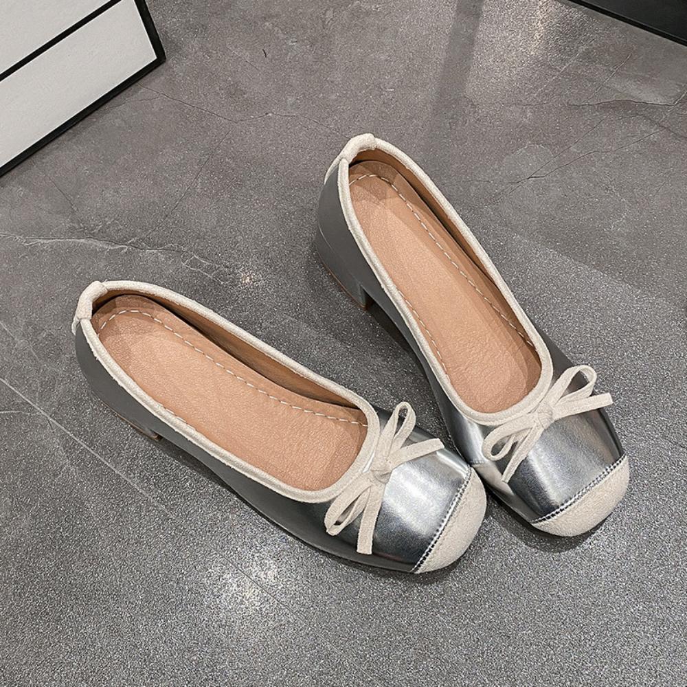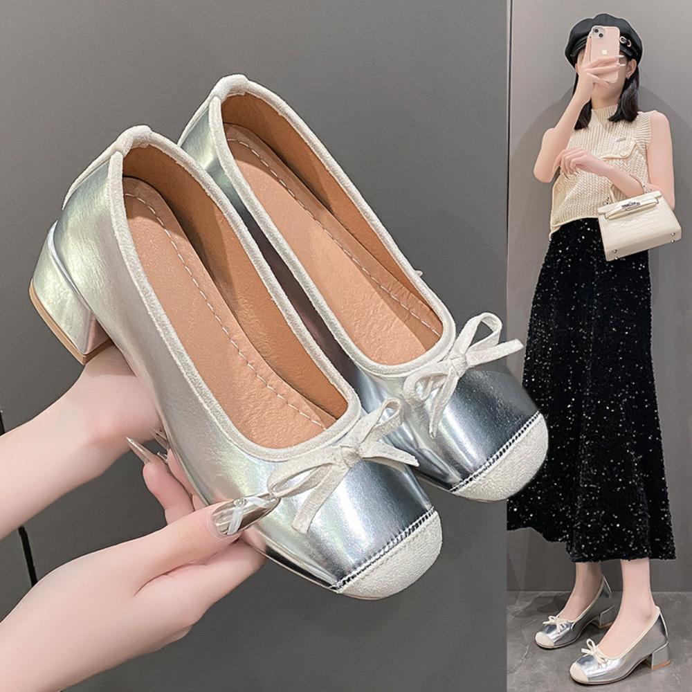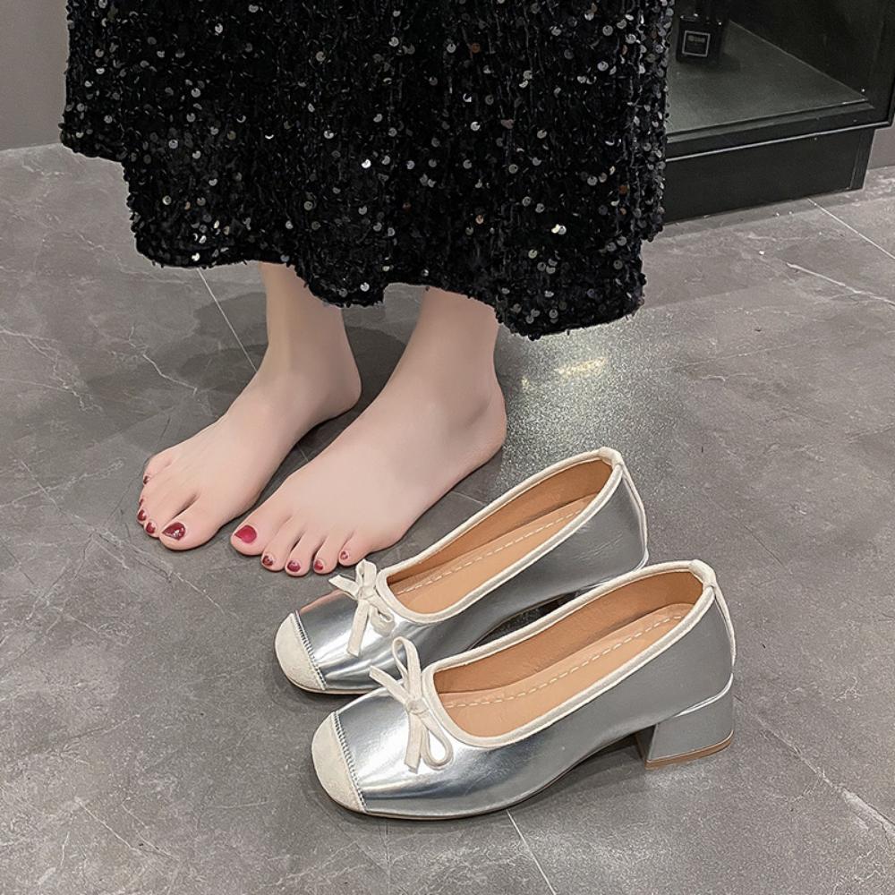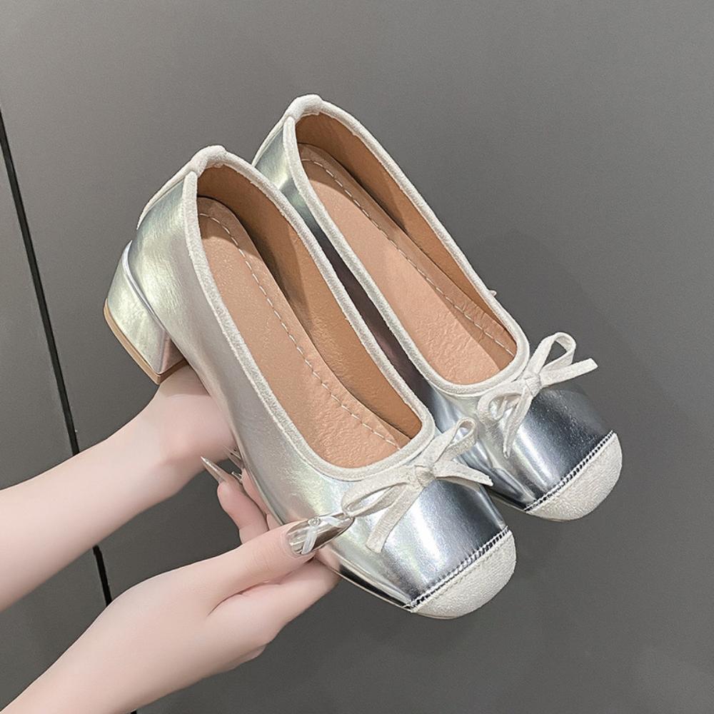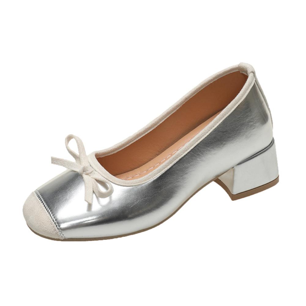 Балетки Удобные французские туфли на толстом каблуке среднего размера с квадратным носком Модные туфли с бантом