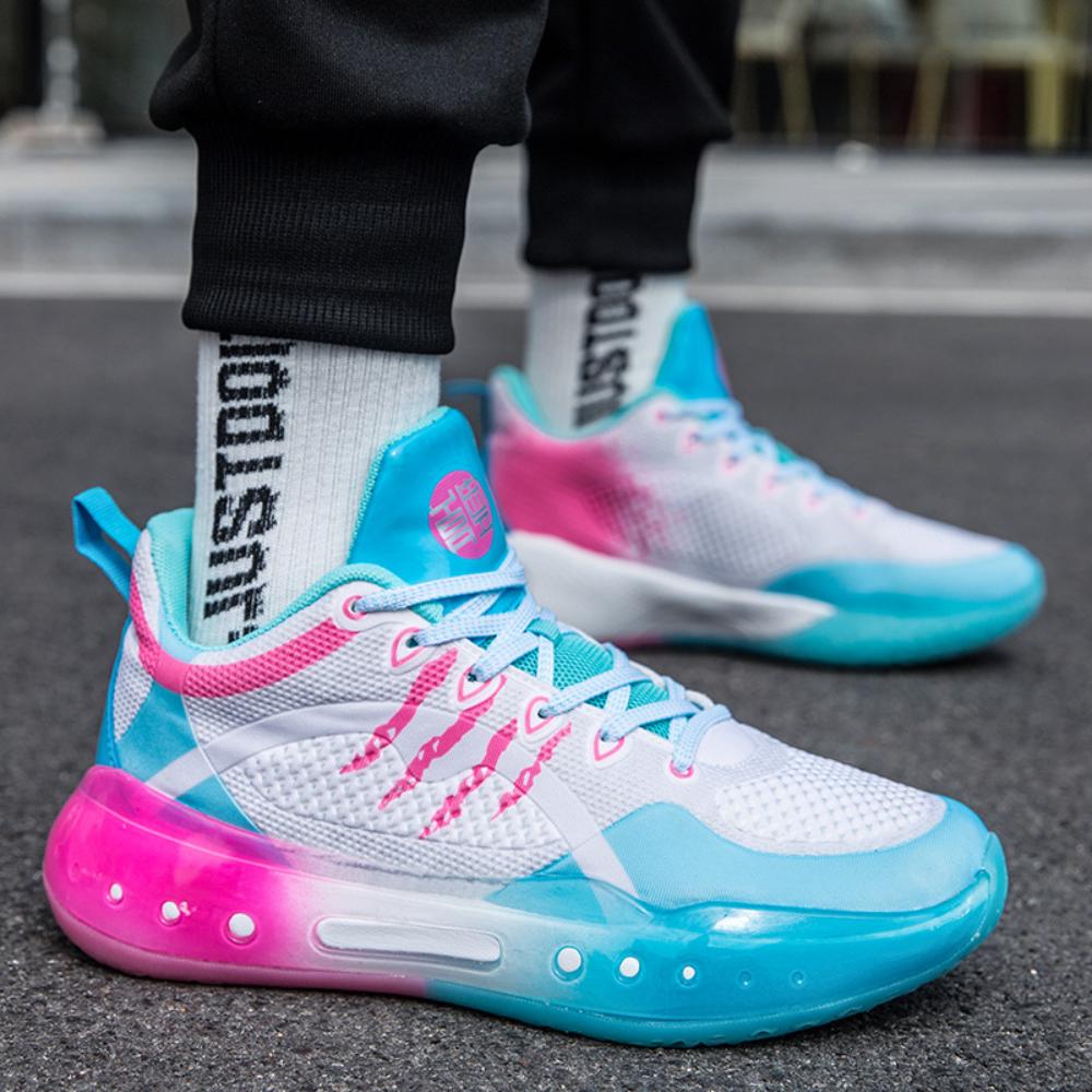 Мужские и женские баскетбольные кроссовки, сетчатая поверхность с низким верхом, красочные модные спортивные кроссовки, износостойкие нескользящие кроссовки для тренировок