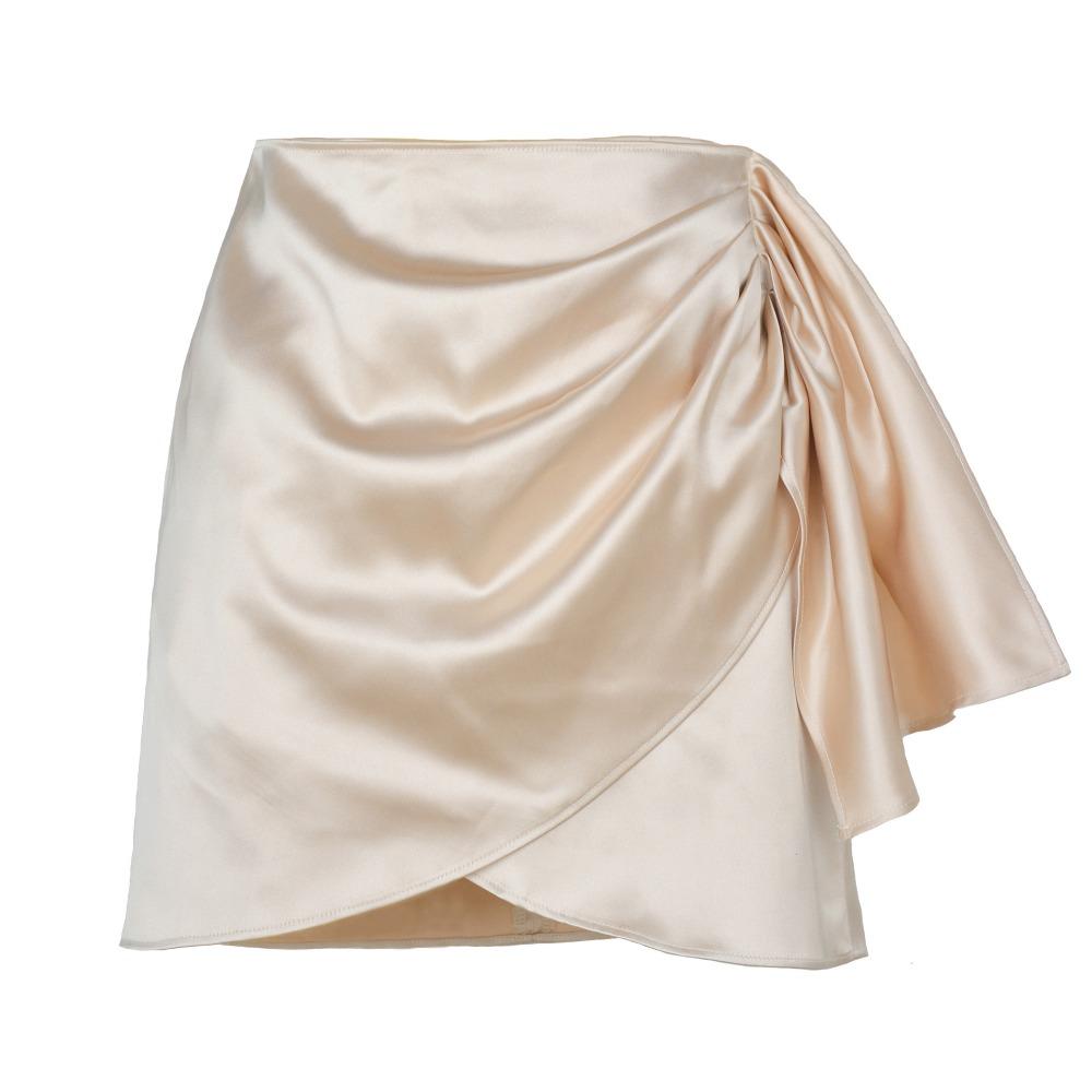 IHUASU Женская летняя юбка-полуюбка с асимметричной молнией, плиссированная однотонная атласная юбка с высокой талией