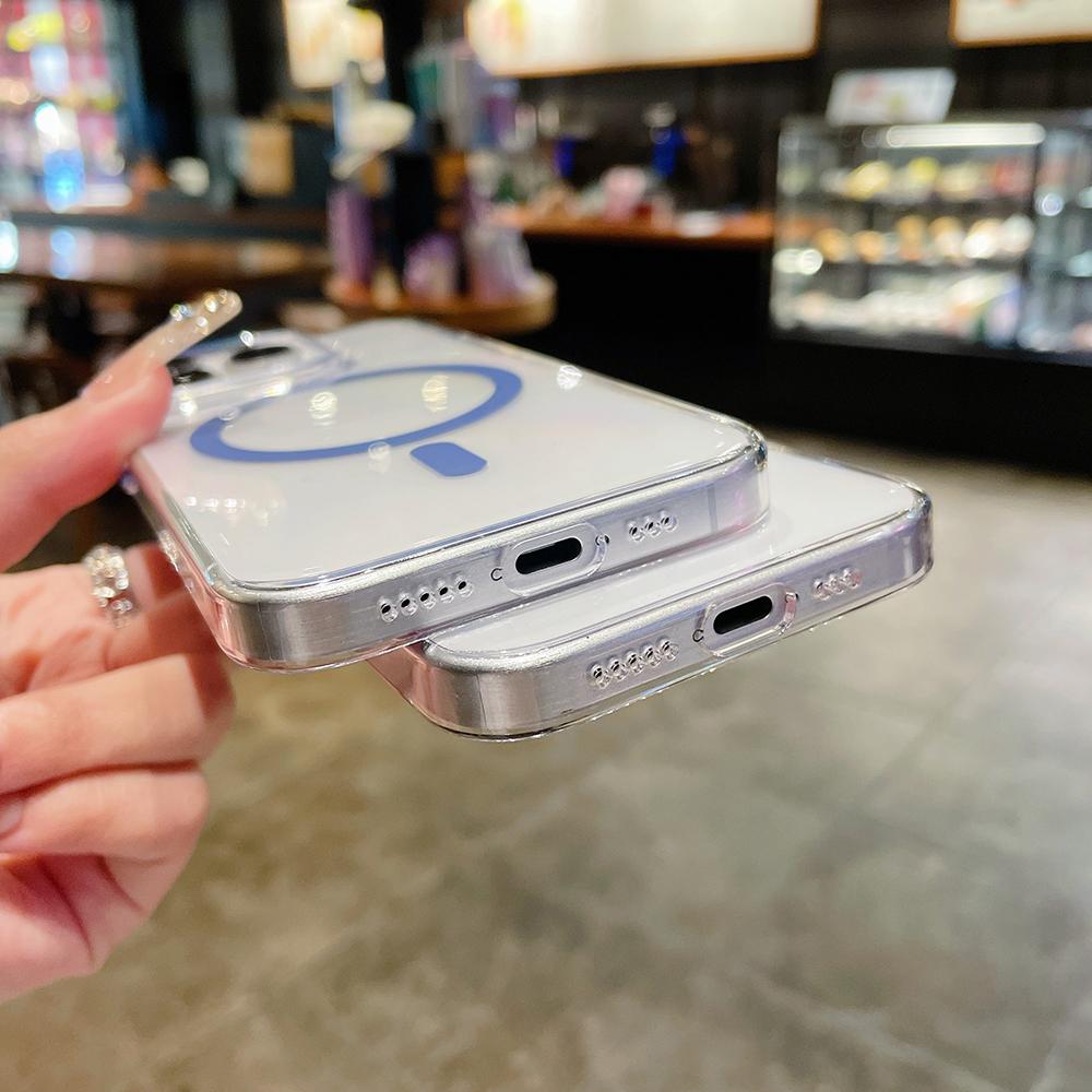 Для Magsafe акриловый прозрачный чехол для iPhone 13 12 14 15 Pro Max Plus ультратонкий прозрачный жесткий беспроводной зарядный магнитный чехол