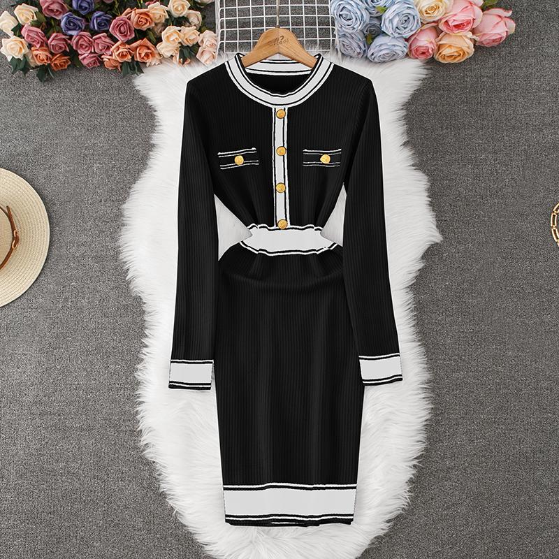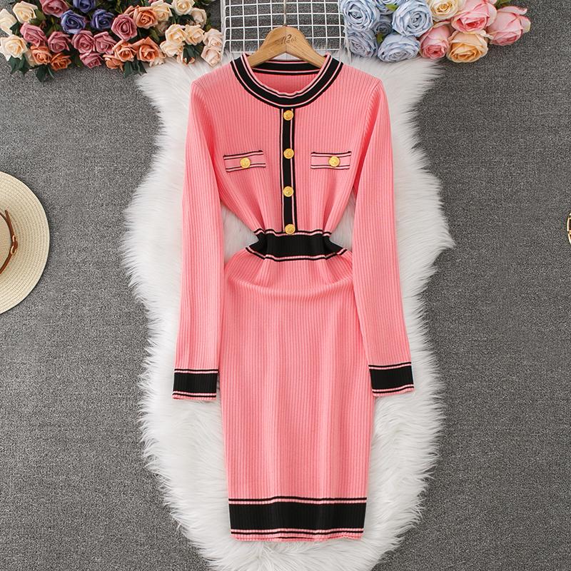 Осень-зима Женский элегантный вязаный свитер с круглым вырезом, облегающий облегающий свитер, платья-пуловеры