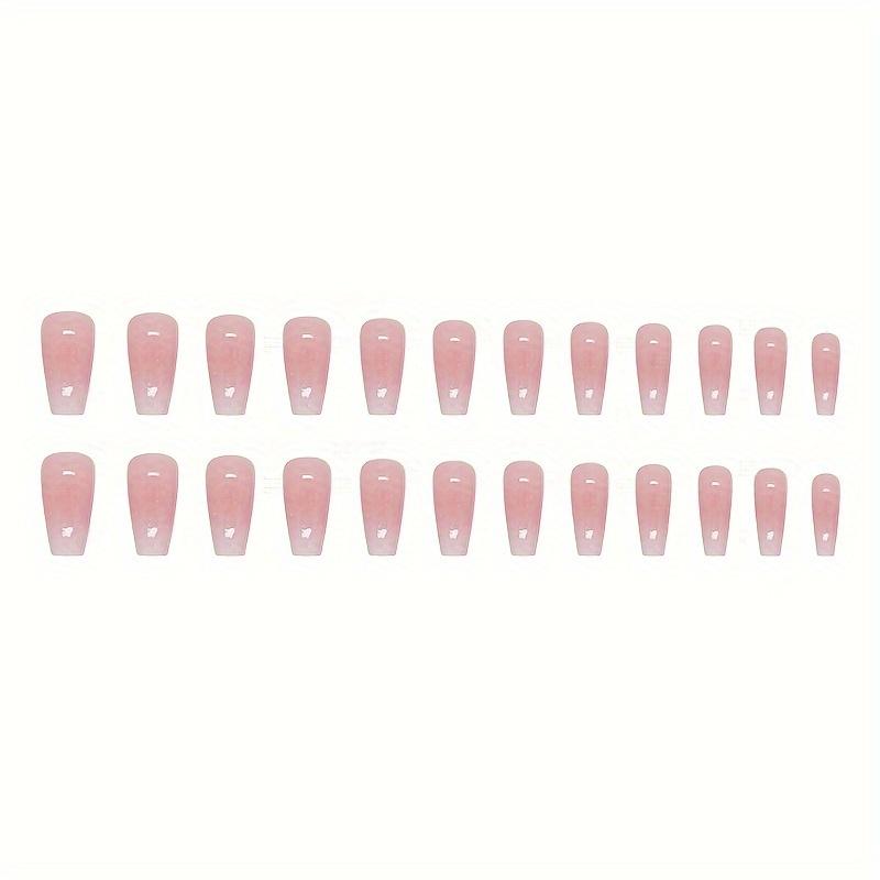 24 шт. глянцевых розовых накладных ногтей, длинные квадратные накладные ногти, блестящие однотонные накладные ногти с полным покрытием, 1 лист желейного клея и 1 шт. пилочка для ногтей в комплекте