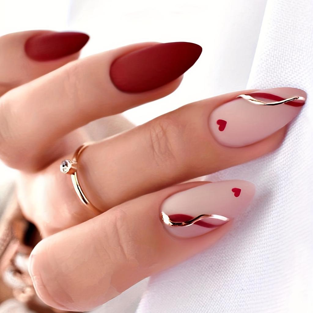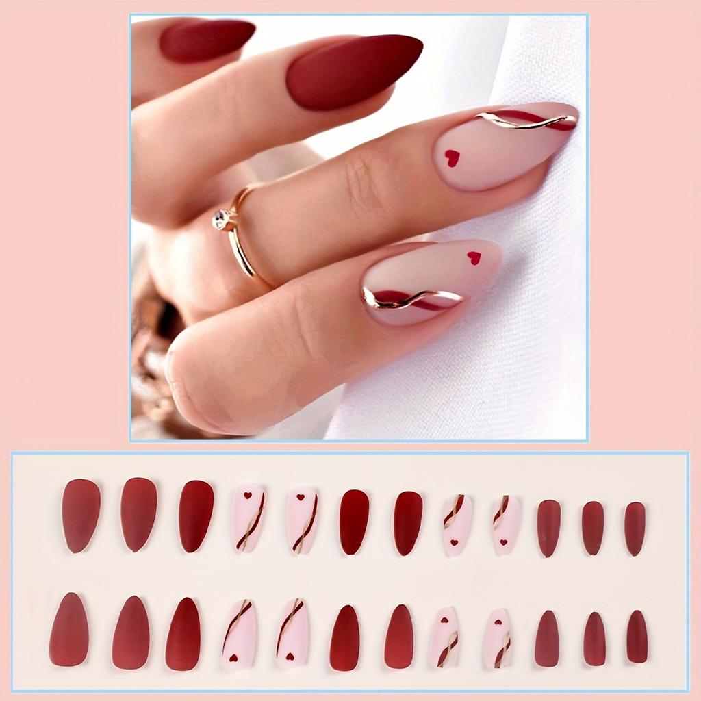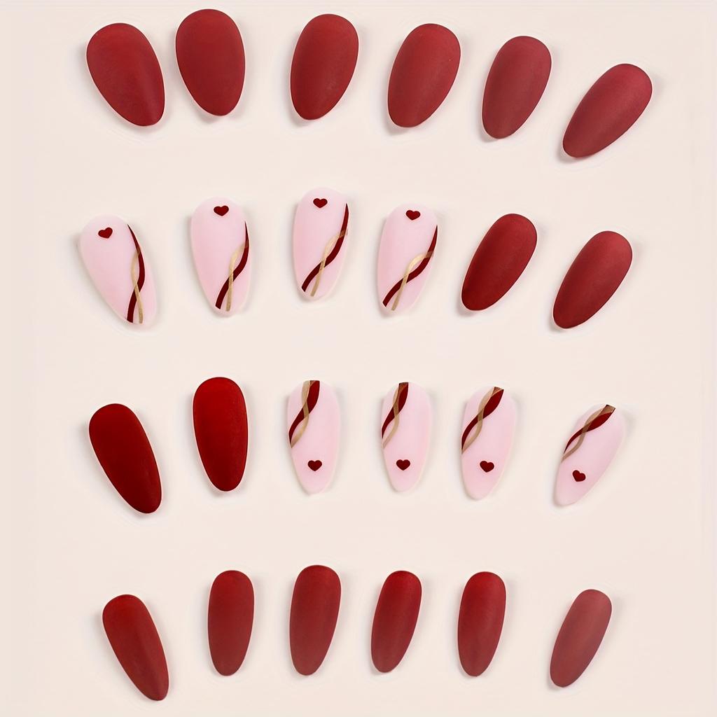 Накладные ногти в форме миндаля с французским рисунком в виде сердца и капель воды. Готовый матовый маникюр с желейным клеем + пилочка для полировки. (24pcs)