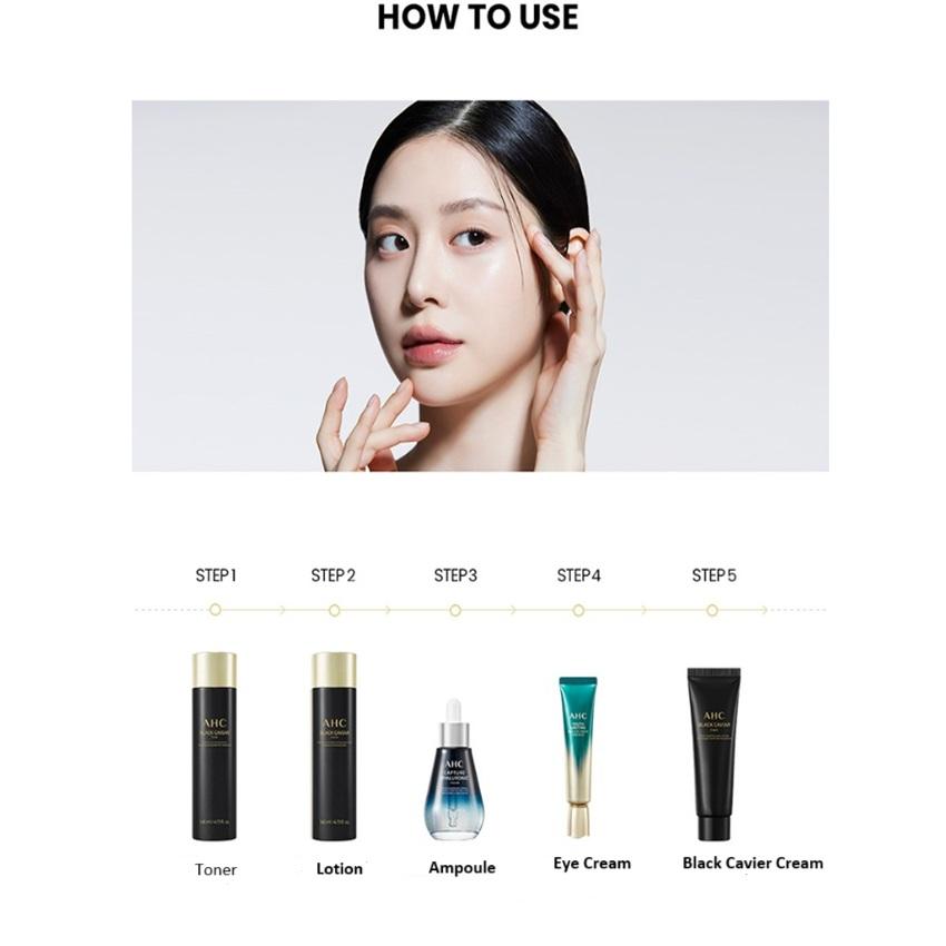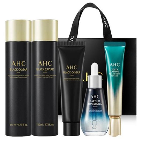 Специальный набор для ухода за кожей AHC Black Caviar (Тоник + Лосьон + Крем + Ампула + Крем для глаз)