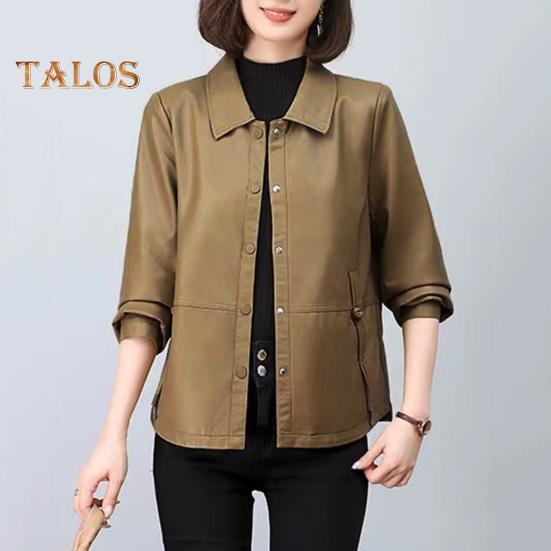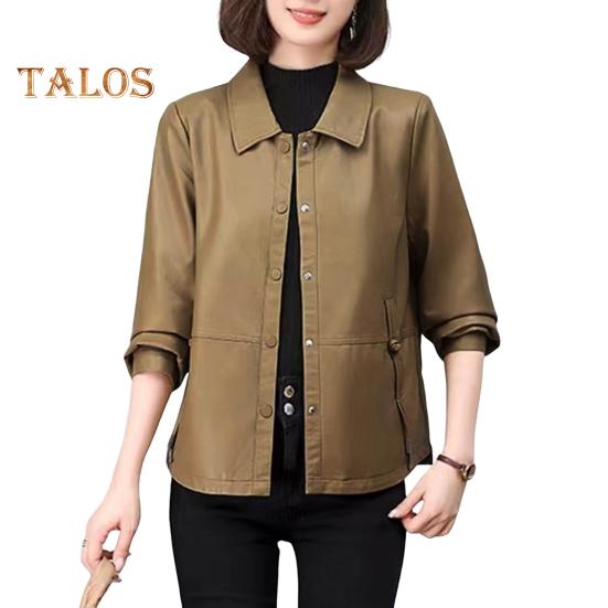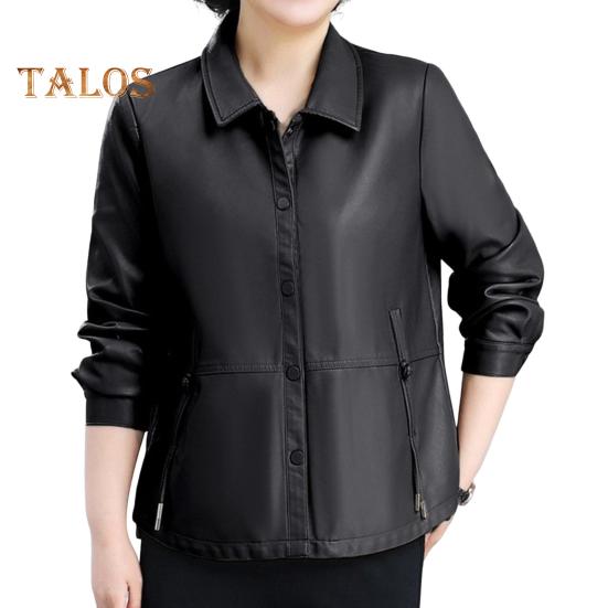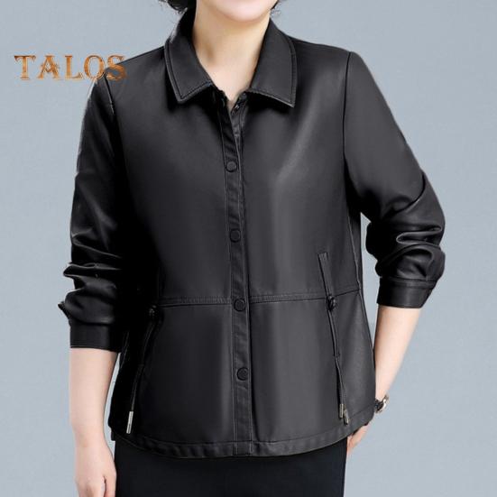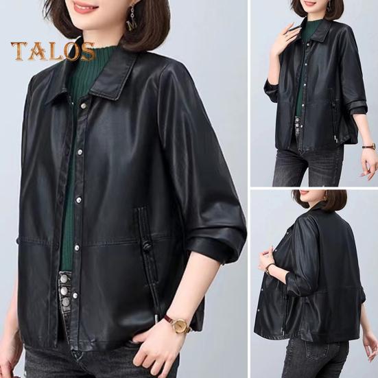 Вневременное обращение: Оцените простую, но изысканную эстетику с застежкой на пуговицы и привлекательным силуэтом этой женской куртки из искусственной кожи, которая с легкостью дополнит любой наряд.