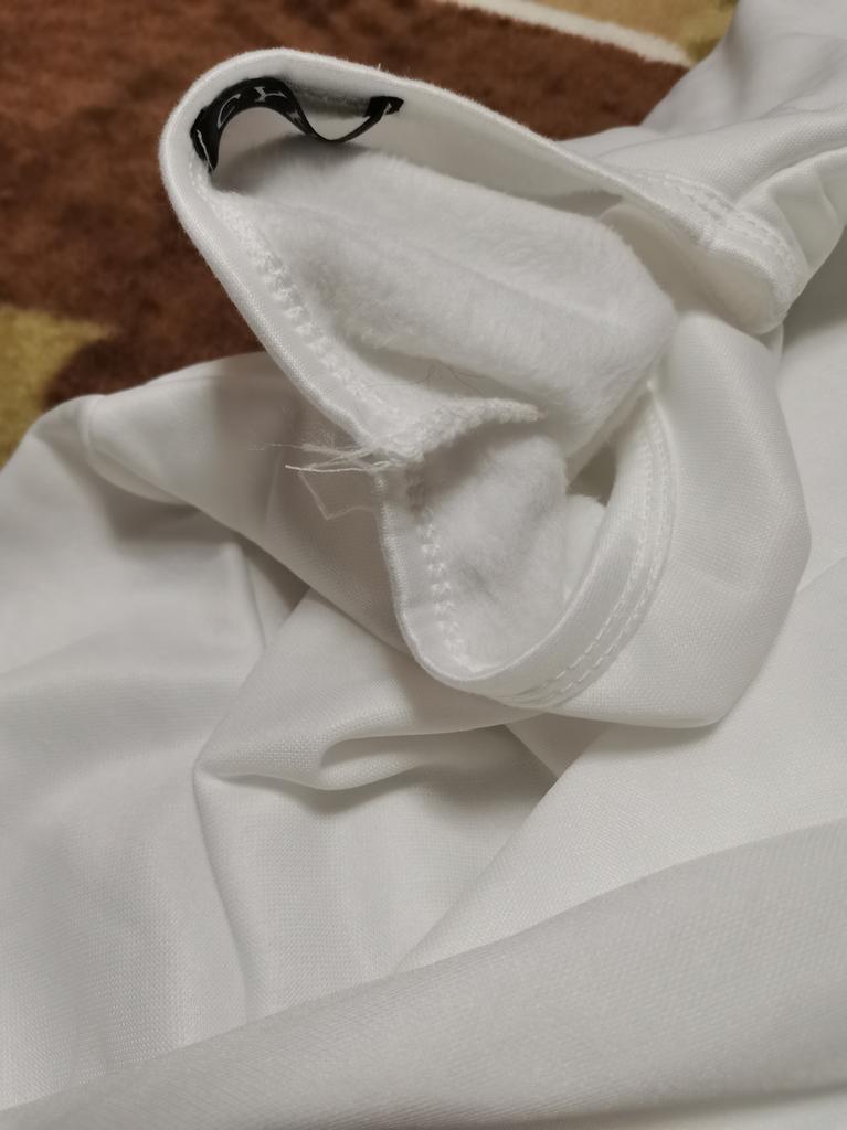 Чудесный. Внутри толстый начёс. Белоснежный. Мой размер 46-48 Приложение предлагает купон скидки за размещение видео в этом отзыве. При этом технической возможности прикрепить видео нет. Я уже в галерее телефона видео по разным папкам поперекладывала, приложение закрыла открывала, телефон перезагрузила. Нет такой возможности. Находясь в режиме правки этого отзыва при прикреплении файлов - фото видит, а видео не видит