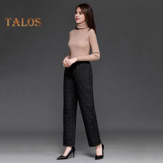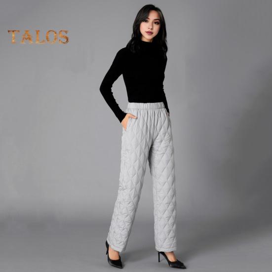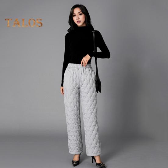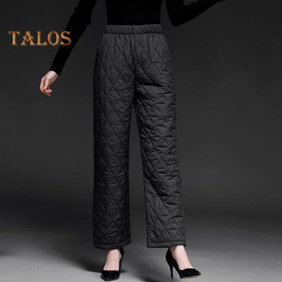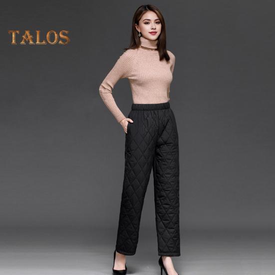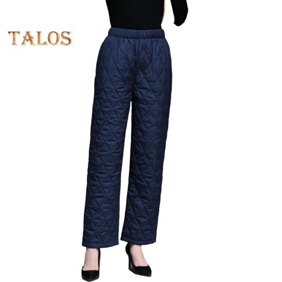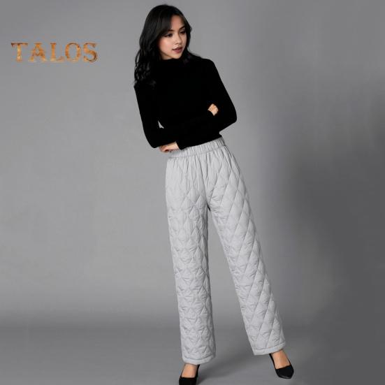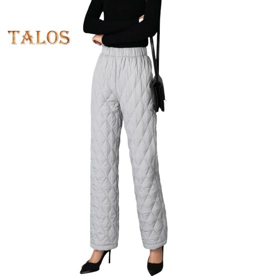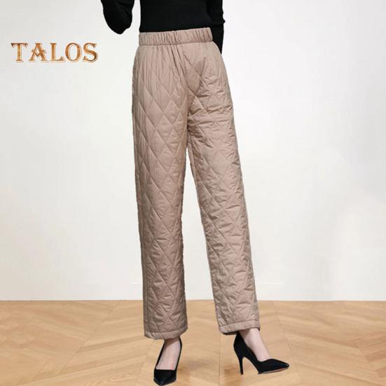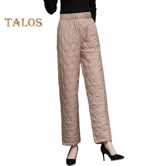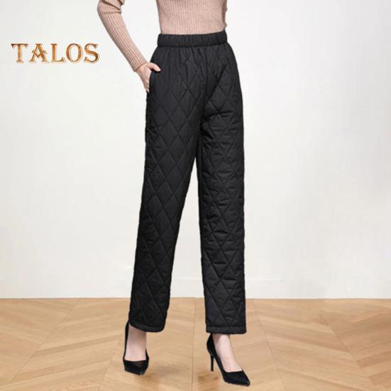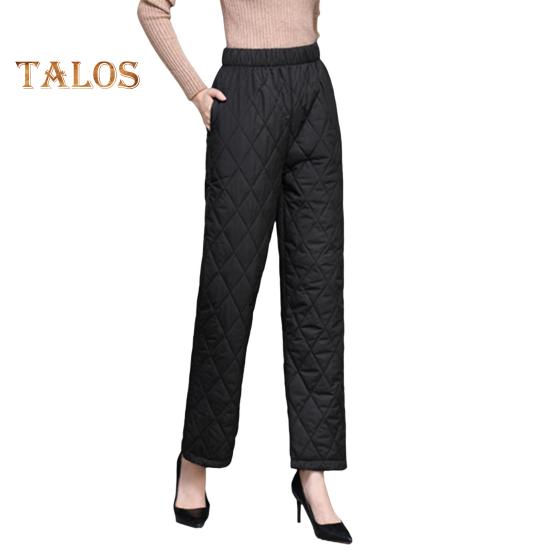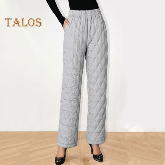 Осенне-зимние хлопковые брюки с ромбическим узором, прямые, широкие, длинные брюки с карманами, однотонные, утолщенные, теплые брюки