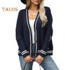 Уникальные элементы дизайна: Выделитесь с этим женским свитером с цветовыми блоками, сложной вязкой и привлекательным V-образным вырезом.. Вышитые узоры в виде звезд на рукавах добавляют игривое очарование общему образу, создавая идеальное сочетание непринужденной простоты и стиля.